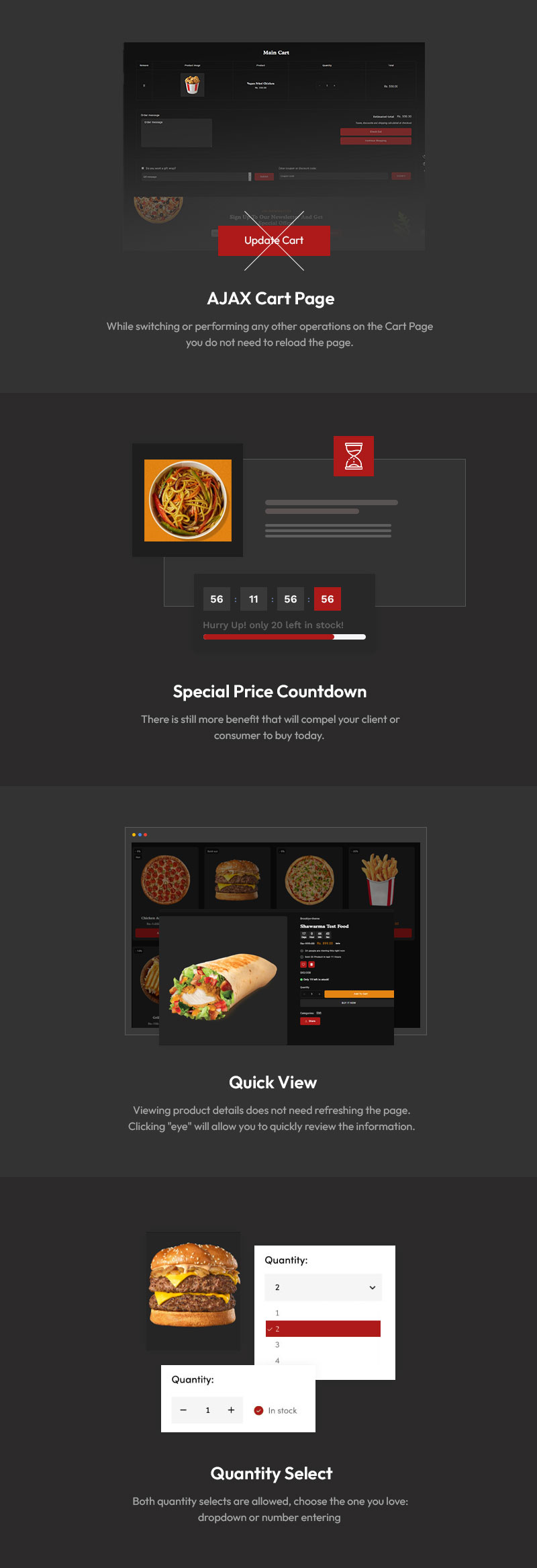 Designed for high conversions, Brooklyn comes with built-in marketing and sales-boosting tools, including discount badges, promotional banners, countdown timers, and featured meal sections. The theme also integrates seamlessly with social media, allowing customers to share their favorite dishes and promotions. Multi-currency and multi-language support make it easier to cater to an international audience, while the secure and optimized checkout system provides a hassle-free ordering experience.