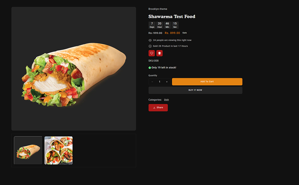 Designed for high conversions, Brooklyn comes with built-in marketing and sales-boosting tools, including discount badges, promotional banners, countdown timers, and featured meal sections. The theme also integrates seamlessly with social media, allowing customers to share their favorite dishes and promotions. Multi-currency and multi-language support make it easier to cater to an international audience, while the secure and optimized checkout system provides a hassle-free ordering experience.