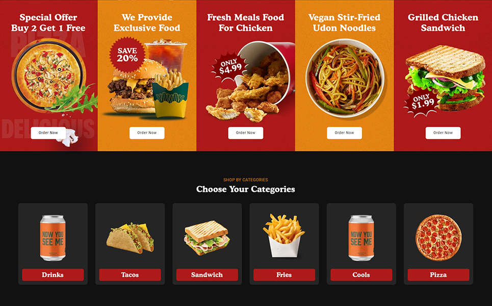 With Brooklyn’s easy drag-and-drop customization, you can personalize colors, fonts, and layouts to match your restaurant’s branding effortlessly. The advanced mega menu allows for organized and user-friendly navigation, making it simple for customers to browse categories like combos, beverages, special offers, and bestsellers. High-resolution product displays, video integration, and zoom-in effects ensure that your dishes look as irresistible online as they do in person.