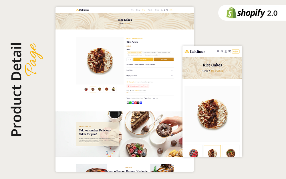 This feature-rich Caklious Shopify theme is designed beautifully to showcase your delicious creations, attract more customers, and drive sales. With a user-friendly interface and an array of customizable options, our Caklious theme ensures your products look as delicious online as they do in person.