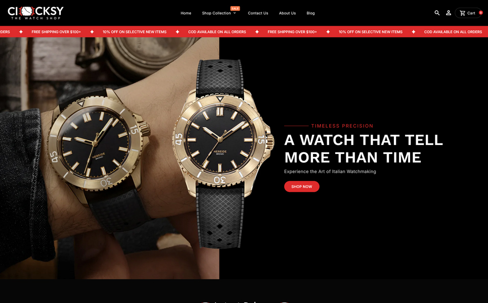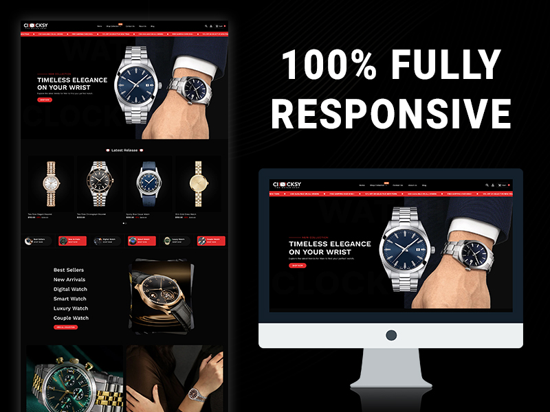 Clocksy - The Watch Shop Responsive Shopify Theme for eCommerce is a premium theme designed exclusively for modern watch stores, luxury timepieces, and stylish accessories. Built with a clean and minimal layout, this theme ensures that your products remain the center of attention while offering a smooth and engaging shopping experience. With its powerful live customizer and Redux framework, you get unlimited options to design your store exactly the way you want—without touching a single line of code.