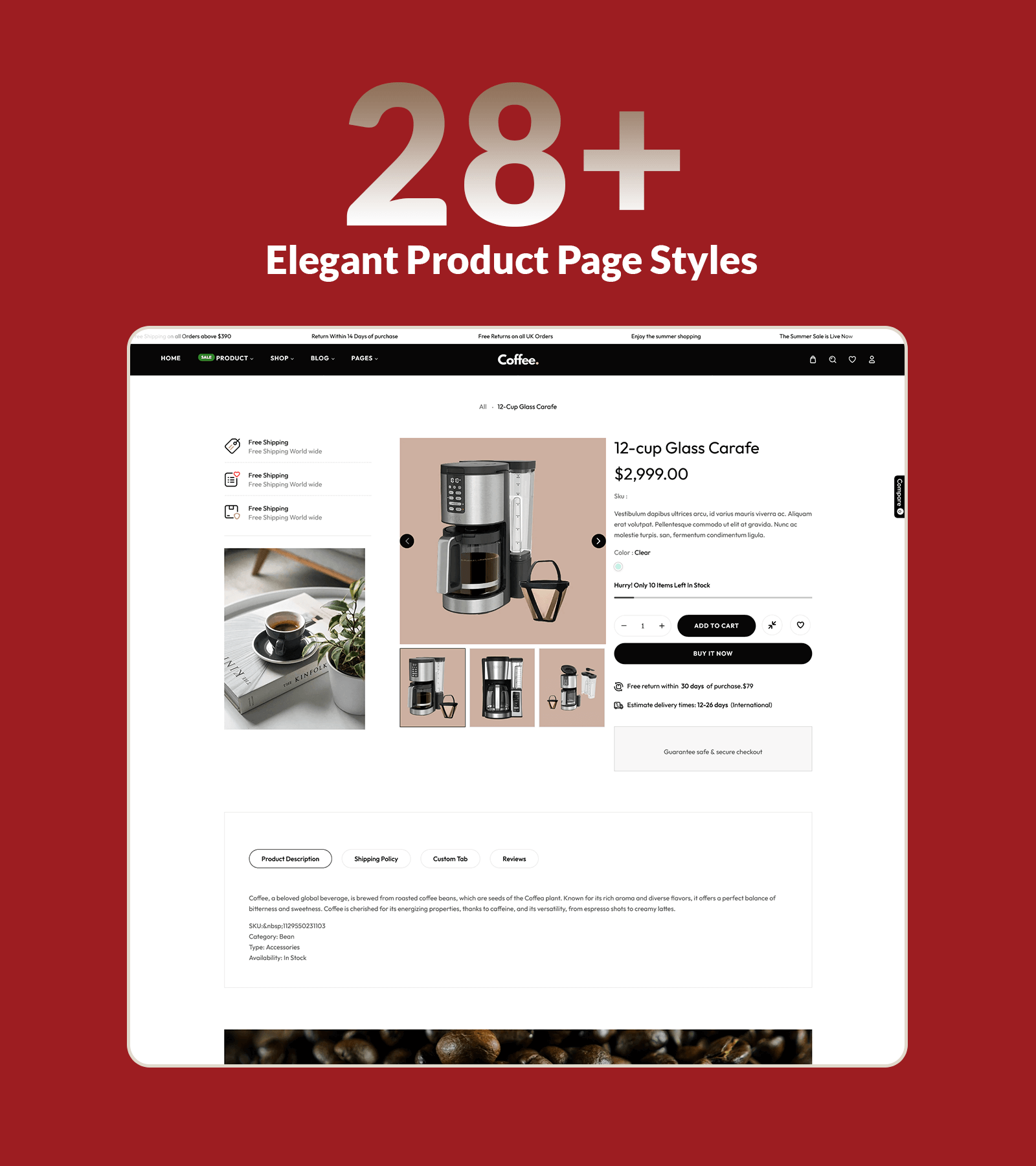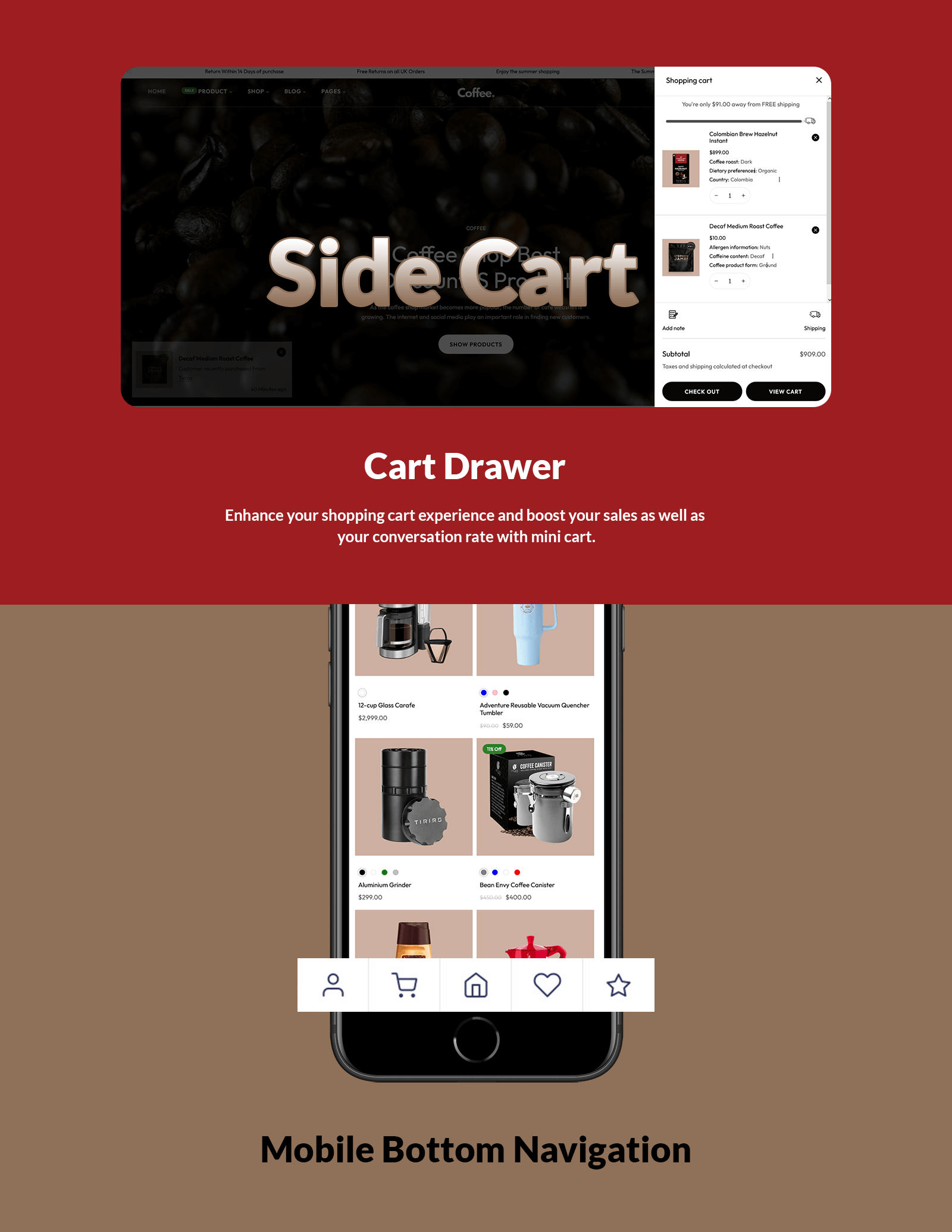 You will get all the listed features implemented on your online store with Premium Starter Kit for Shopify. If you do not like wasting time and paying monthly fees for APPs, you can get useful features on your site within 24-48 hours or less and only pay once. Listed above features are theme-specific.