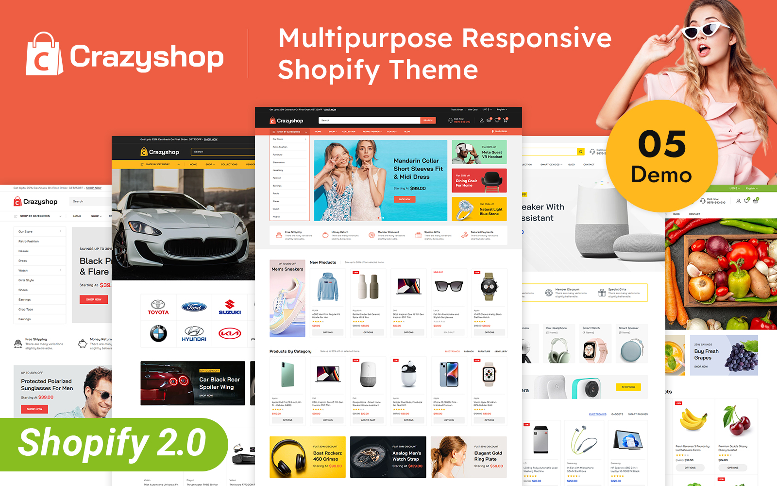 Crazyshop - Multipurpose Sections Shopify 2.0 Responsive Theme Shopify Theme