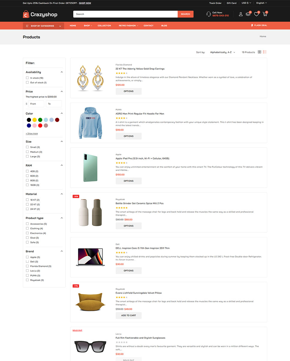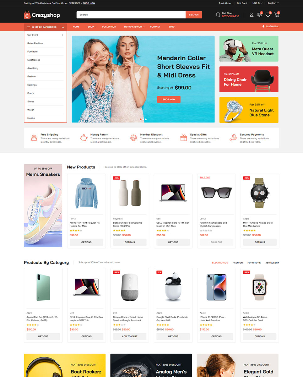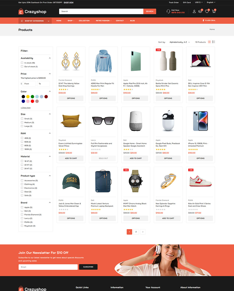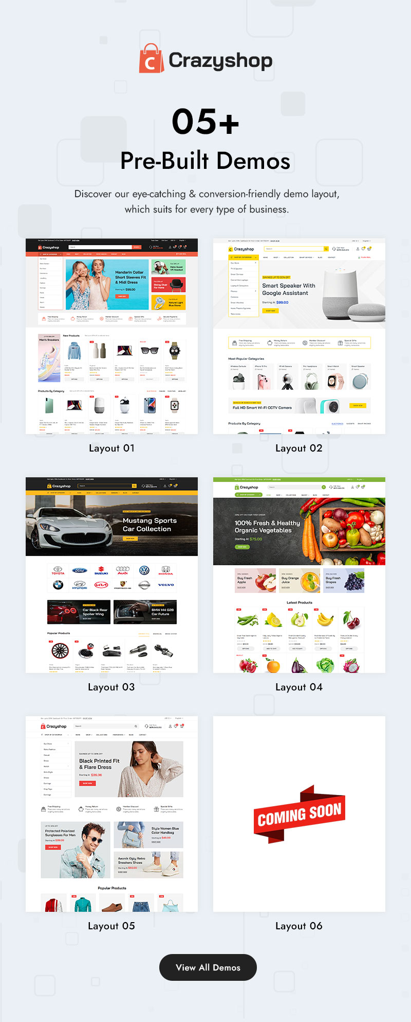 Elevate your eCommerce journey with Crazyshop – a theme that combines modern aesthetics, seamless functionality, and unparalleled flexibility. Transform your vision into a thriving online store today!