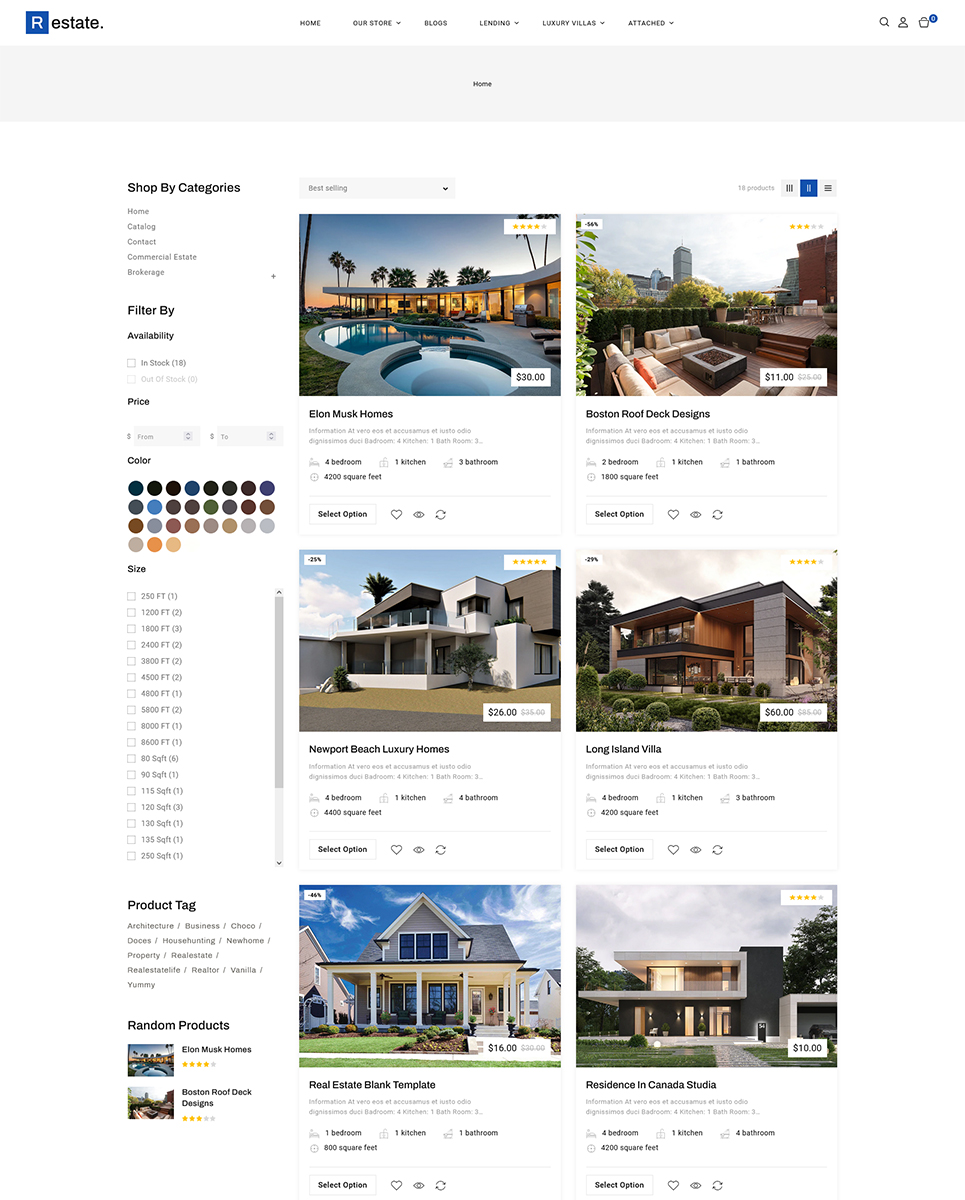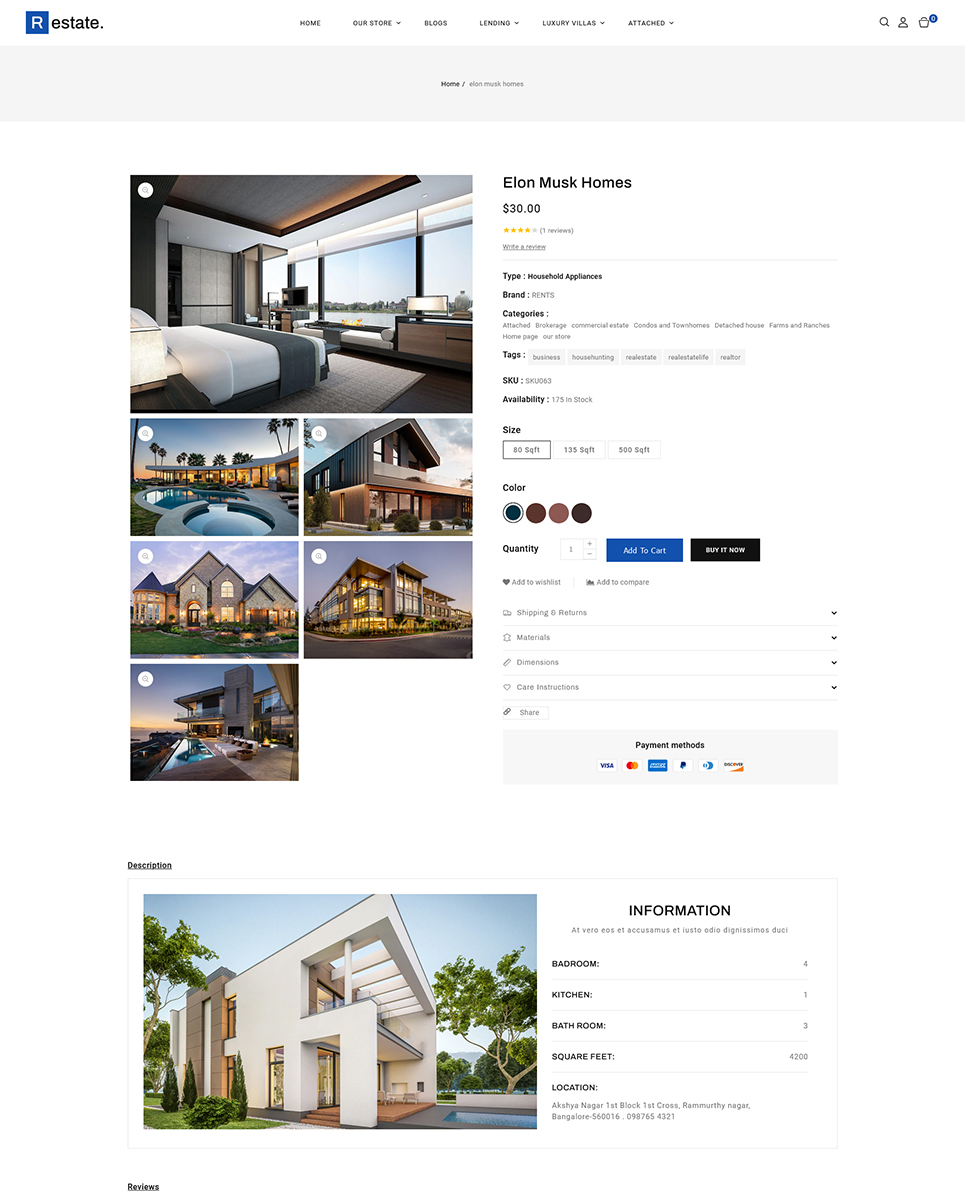 Estate Shopify Theme comes with a unique design and 02+ layouts. Mind is very flexible and easy to use and can easily satisfy all of your needs. Showcase all types of properties in an impressive/unique manner, be it real estate, houses, building complexes, apartments or business spaces, & much more. It has a full range of features to help you set up and run a successful business online, where you can easily list and sell your properties.