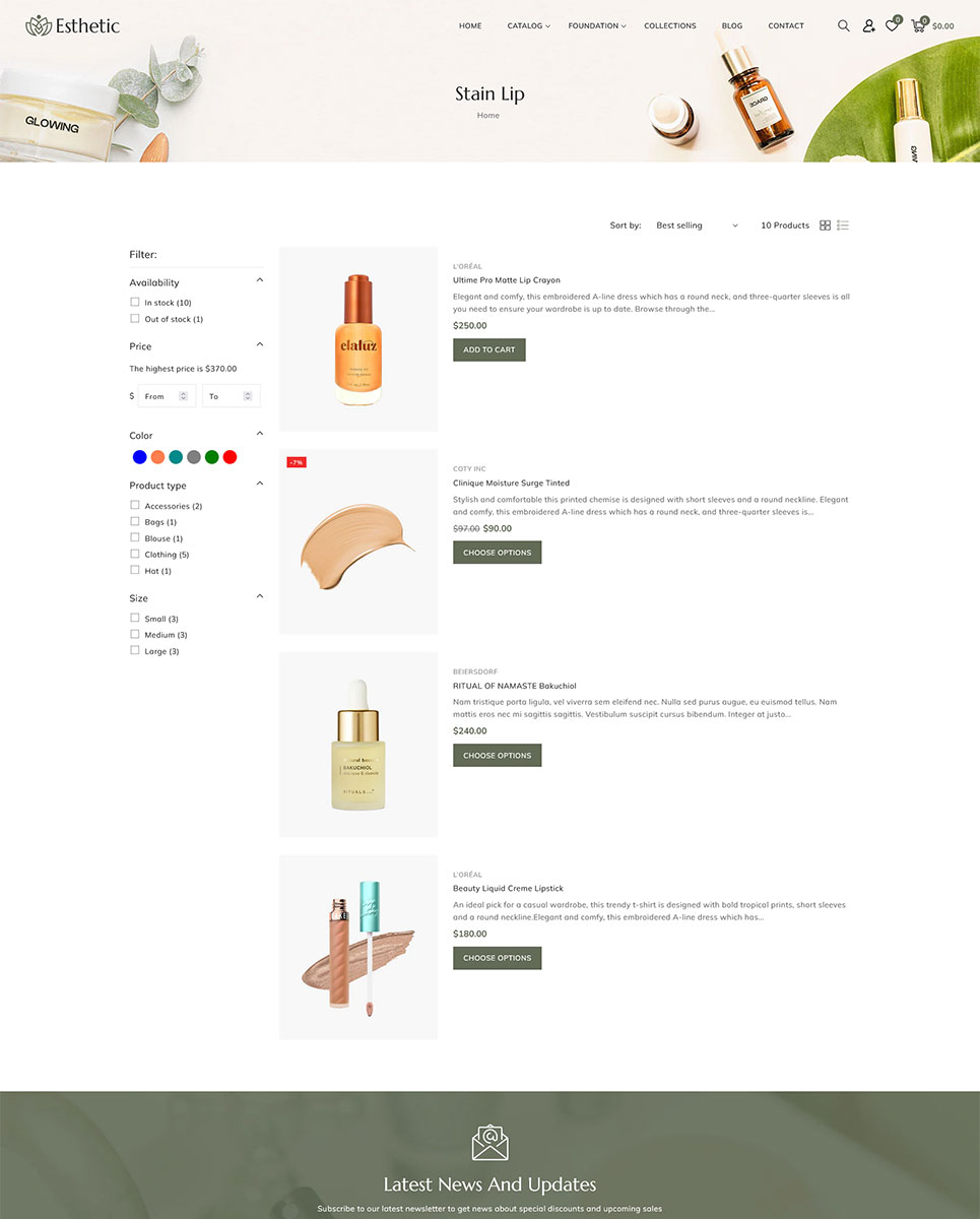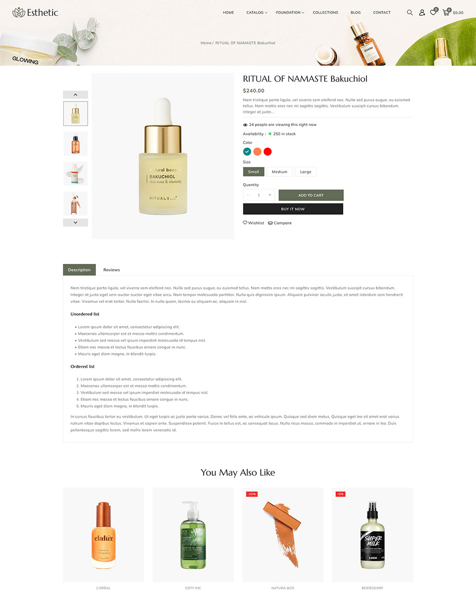 Esthetic theme's built-in Ajax capability allows customers to browse products quickly and smoothly, filter products dynamically, and update product pages instantly without the need for page refreshes. It also offers a user-friendly cart and checkout procedure, so your consumers will have a pleasant purchasing experience. Its responsive design guarantees that your website appears and works beautifully across all platforms, from desktop computers to smartphones.
