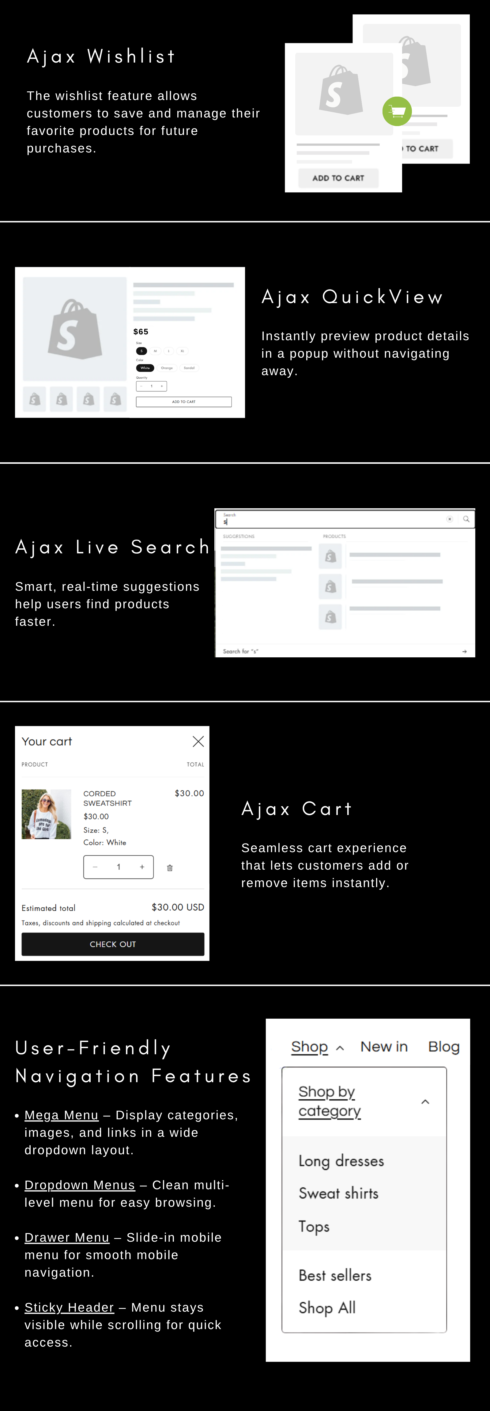 Ethereal is more than just a theme—it’s a refined e-commerce solution for brands that value aesthetics, effortless navigation, and a premium shopping experience.