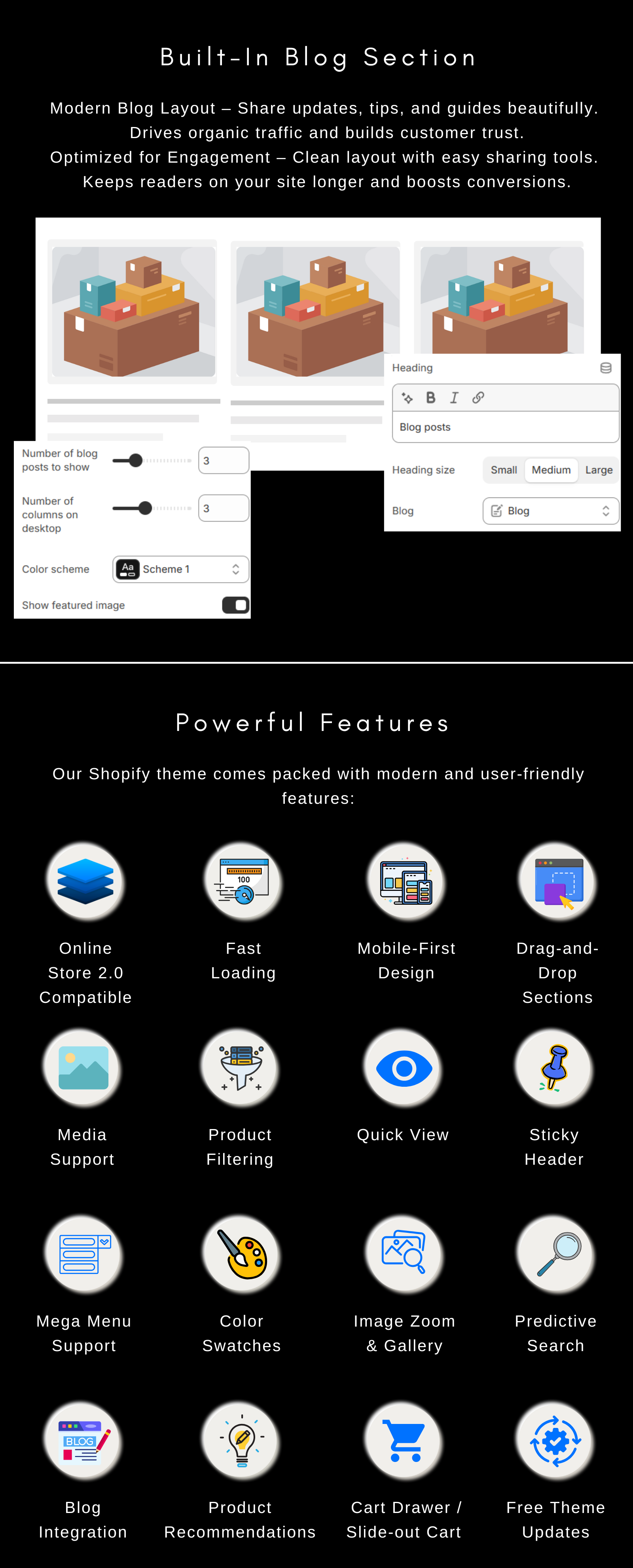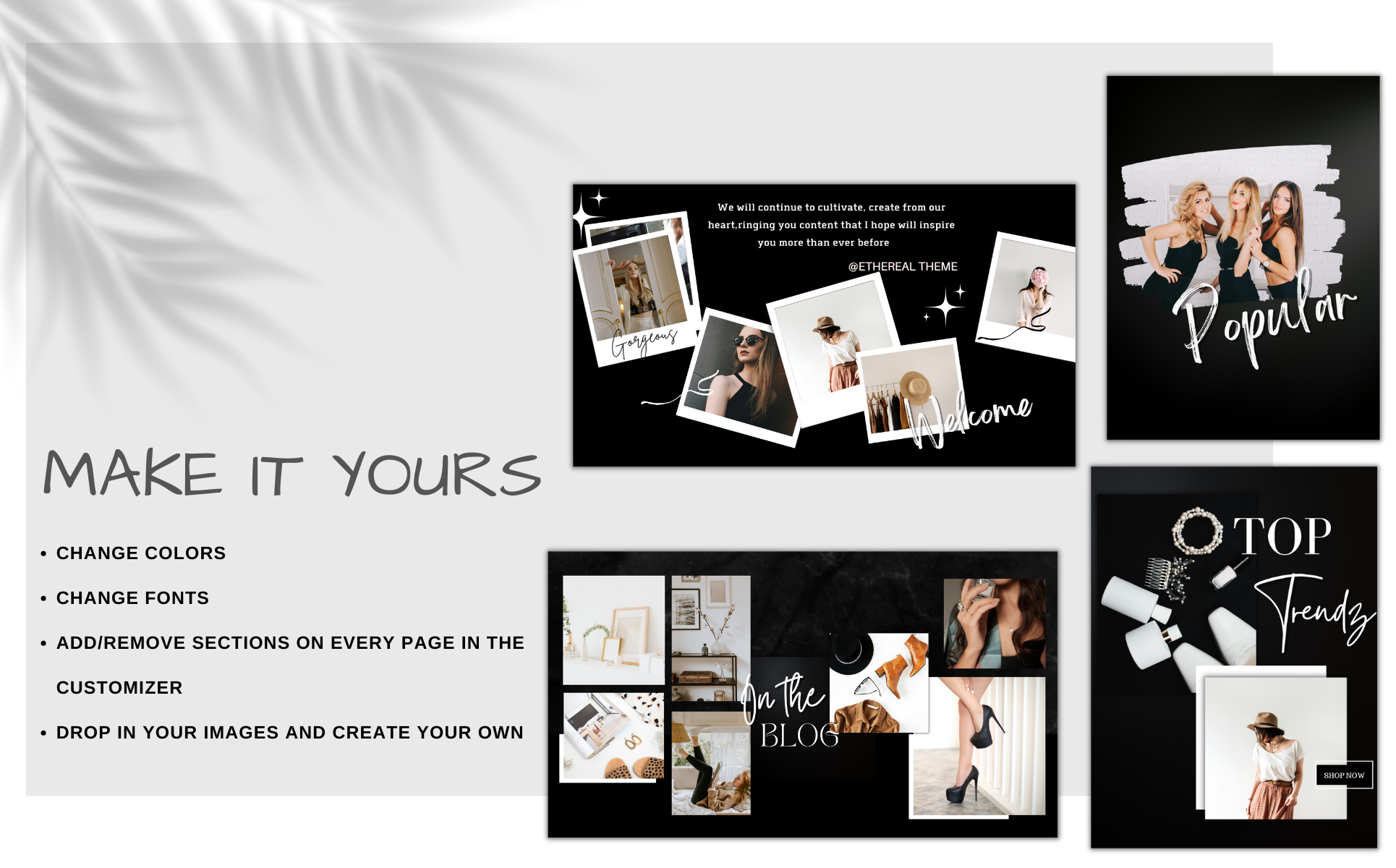 This theme blends minimalism with high-impact visuals, making it perfect for boutique stores and luxury brands. It includes stunning Canva-created images to elevate your brand’s presentation.