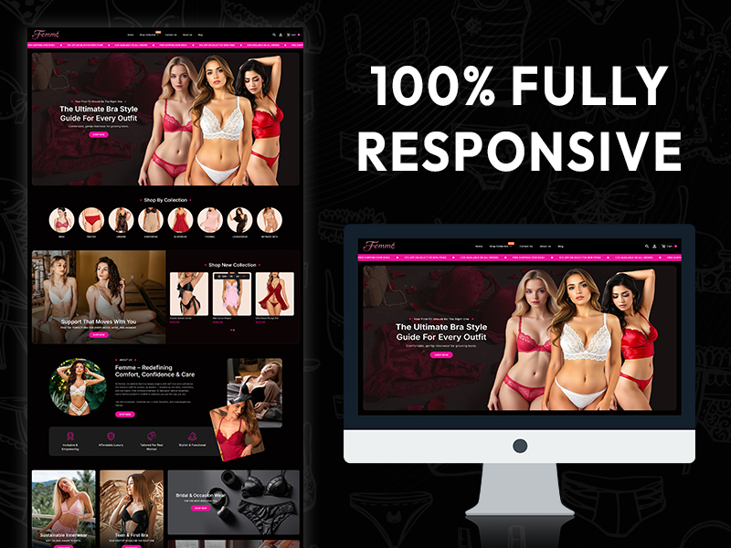 Femme – Night Wear Multipurpose Responsive Shopify Theme is an elegant and modern Shopify theme tailored for women's fashion, nightwear, lingerie, and lifestyle stores. With its soft, feminine design and smooth user experience, this theme is crafted to highlight comfort, style, and sophistication. Built on the Bootstrap framework and powered by the Redux framework, Femme Night Wear offers a 100% responsive layout, ensuring your store looks flawless on desktops, tablets, and mobile devices.