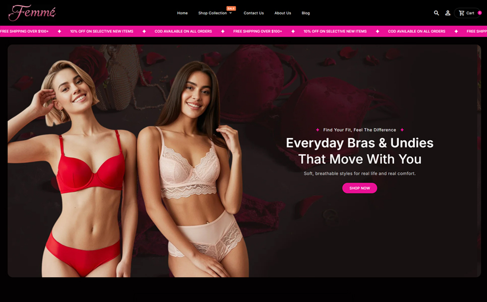 Femme - Night Wear Multipurpose Responsive Shopify Theme