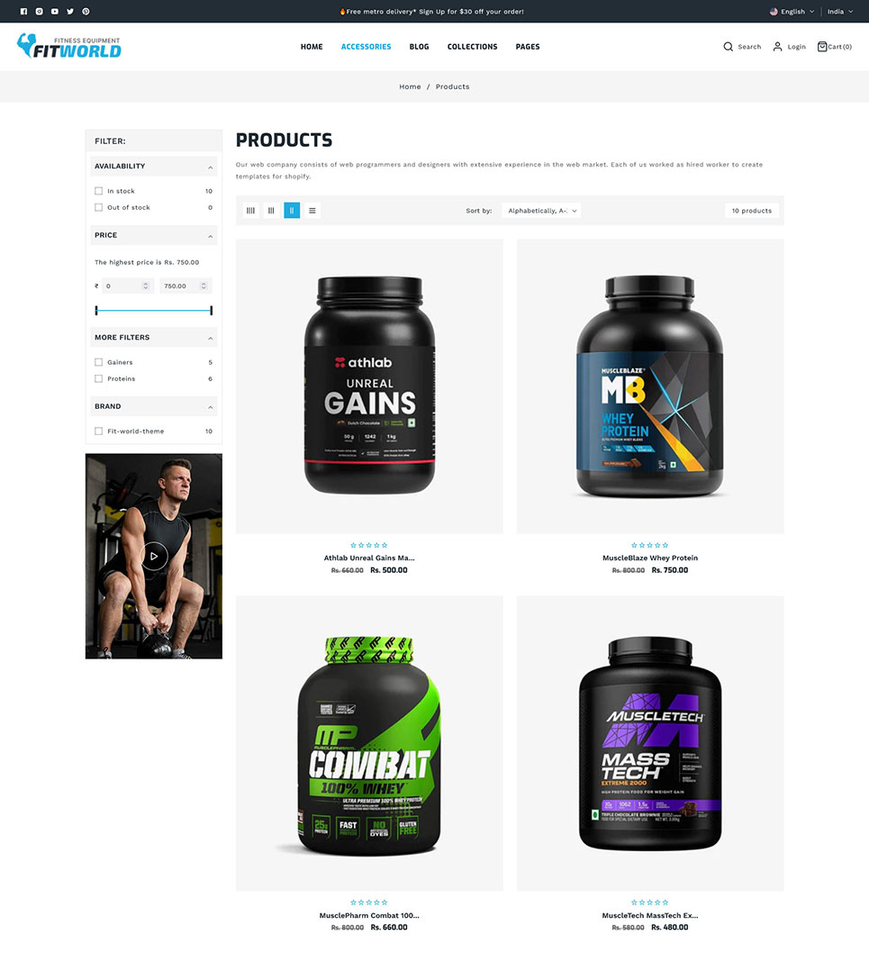 Designed with versatility in mind, Fitworld is ideal for promoting a wide range of products. Whether you’re selling fitness gear, gym apparel, or Halloween costumes, the theme’s adaptable layout allows you to tailor your store’s appearance and functionality to match your unique brand identity. The advanced product filtering options make it easy for customers to find exactly what they’re looking for, boosting satisfaction and increasing the likelihood of sales.