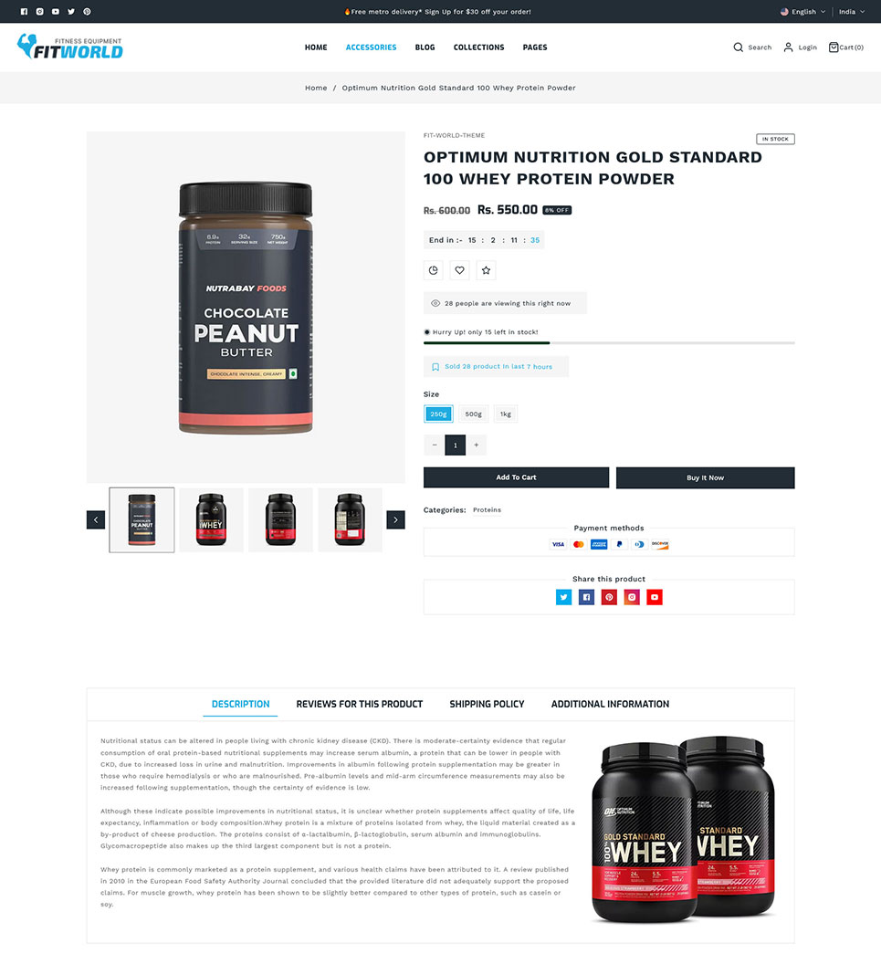 Secure and fast checkout processes are essential for customer satisfaction, and Fitworld delivers with support for multiple payment gateways, SSL certification, and optimized checkout flows. Additionally, the theme offers detailed analytics and reporting tools, providing insights into sales, customer behavior, and website traffic to help you make informed decisions and optimize your marketing strategies.