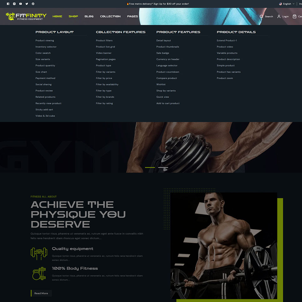 Fitfinity - Body Fitness Equipment & Sports Fashion Store Shopify 2.0 Responsive Theme Shopify Theme