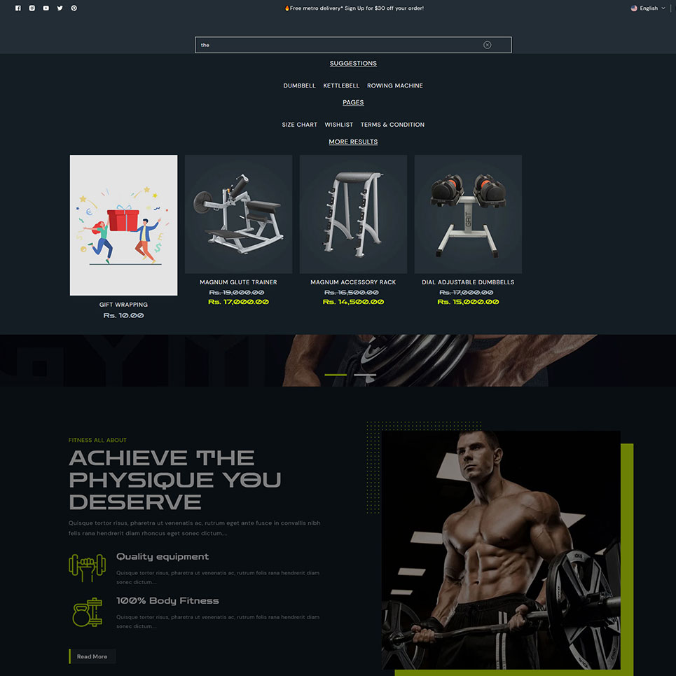 Speaking of SEO, our theme is engineered with optimization in mind. From clean, SEO-friendly coding to strategic placement of meta tags and alt texts, every aspect is designed to maximize your store's discoverability online. This ensures that potential customers find you easily when searching for fitness equipment and sports fashion.