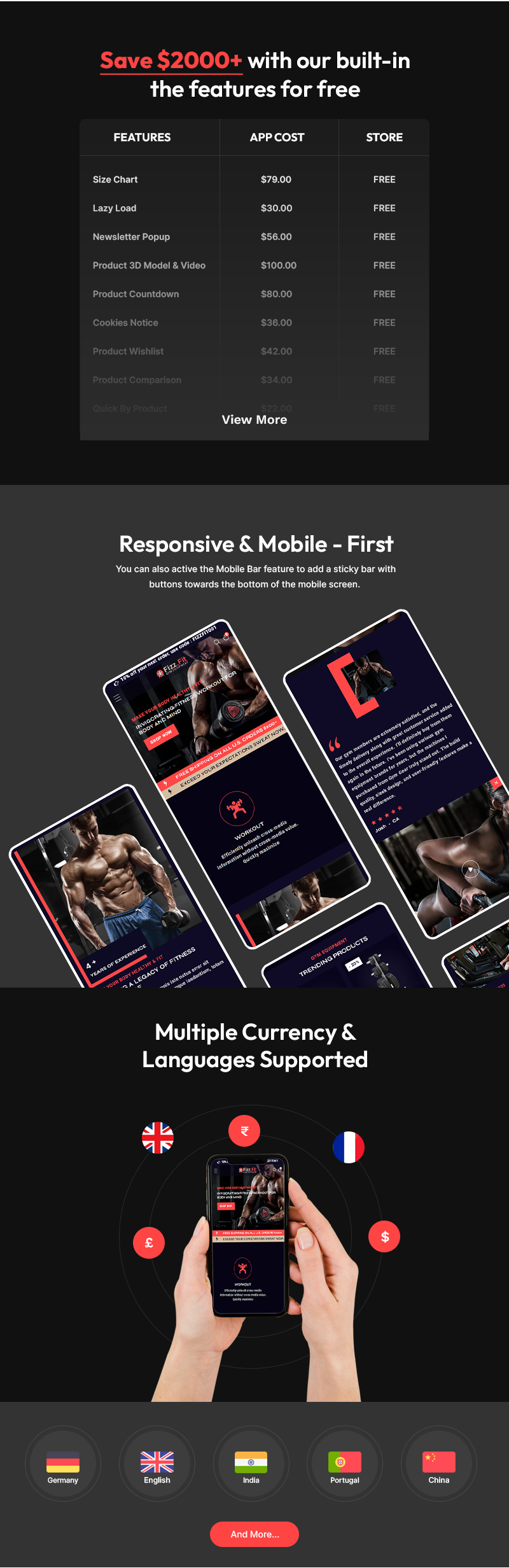 This theme is developed using Shopify’s latest features, offering a smooth drag-and-drop editor, fast page loading, and seamless integration with key apps. With a focus on conversion and clarity, FizzFit turns visitors into loyal customers.
