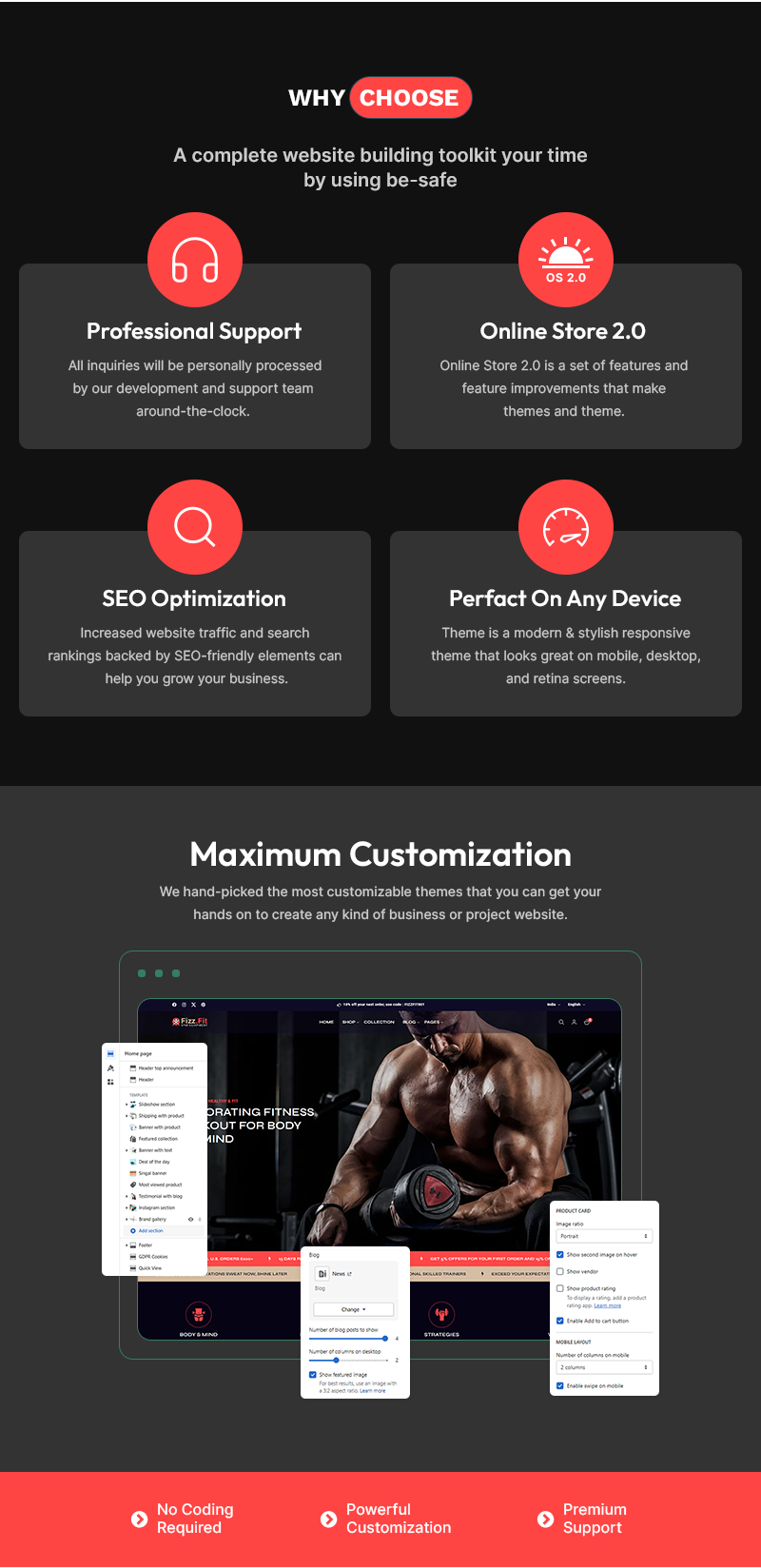 FizzFit is a bold and modern Shopify theme tailored for fitness brands, gyms, and active lifestyle stores. With a sharp layout, vibrant visuals, and fluid responsiveness, FizzFit is built to energize your online store and deliver a powerful user experience. Whether you're selling workout gear, gym memberships, supplements, or training programs, FizzFit gives you the flexibility to showcase products with confidence. Every section is fully customizable, allowing you to tailor the layout to match your brand’s energy and identity.