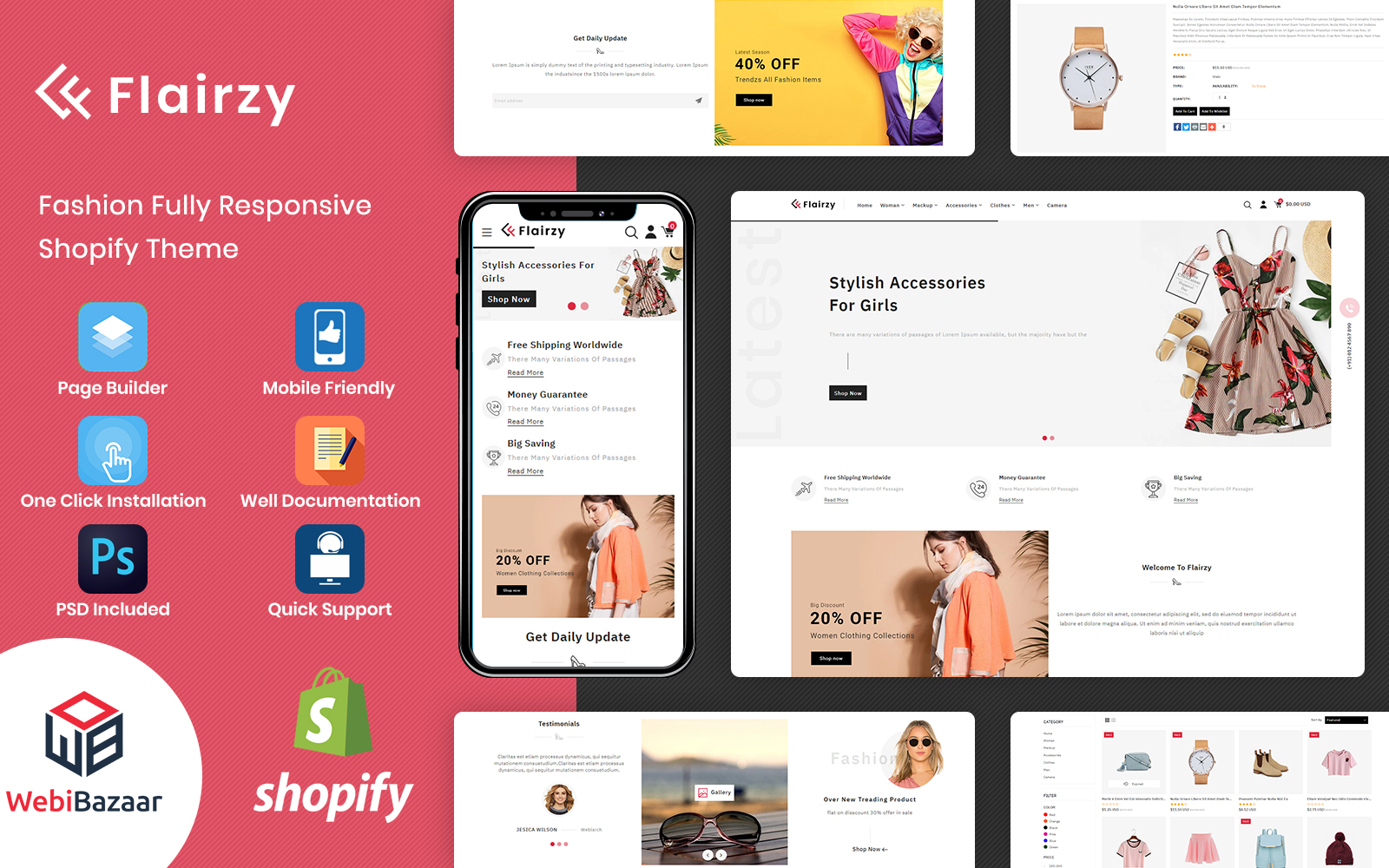 Flairzy is a Best Ecommerce Fashion Shopify theme. Just One Click To Install theme, It comes with a lot of advance features and variations, It's Easy to use and customize, Clean & Powerful design that would easily fit on your new or existing online store. Flairzy Is suitable for Electronics, Accessories, Multipurpose theme. Boost your selling using Flairzy theme, Multi currency options, The design is well suited for all modern store, vendor based marketplaces, affiliate websites. Flairzy is a modern, clean and professional Shopify Theme. It helps you make the most out of using eCommerce to power your online store.