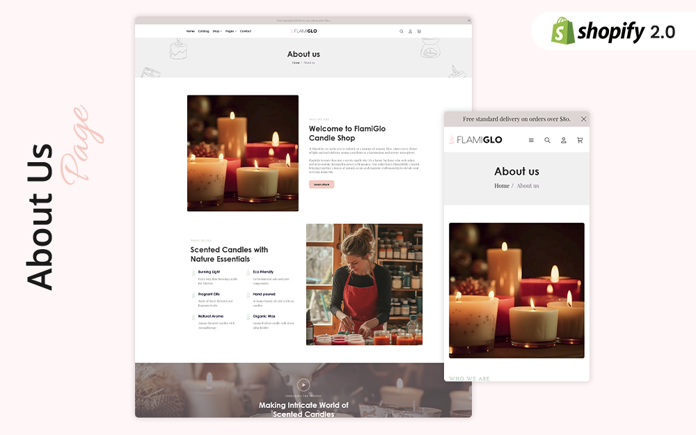 FlamiGlo Candle Shop Shopify Theme is specially designed for candle shops, craft stores, artisans and decors, looking to create a stunning professional online presence with a perfect blend of aesthetics and functionality, ensuring showcase your candles and crafts with style to stand out and attract customers.