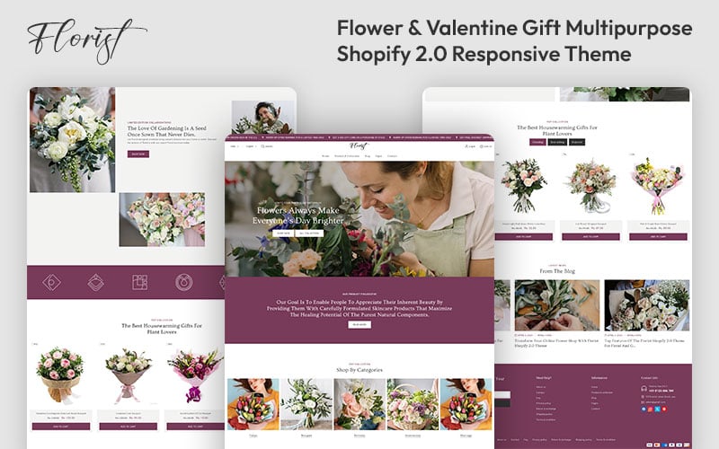 Welcome to the world of Florist, a sophisticated and versatile Shopify 2.0 theme crafted specifically for flower shops and Valentine gift stores. This fully responsive, feature-rich theme is designed to deliver an exceptional online shopping experience while boosting your store's search engine rankings. Whether you're selling beautiful bouquets, romantic Valentine gifts, or any floral arrangements, Florist offers a powerful platform to showcase and sell your products effectively.
