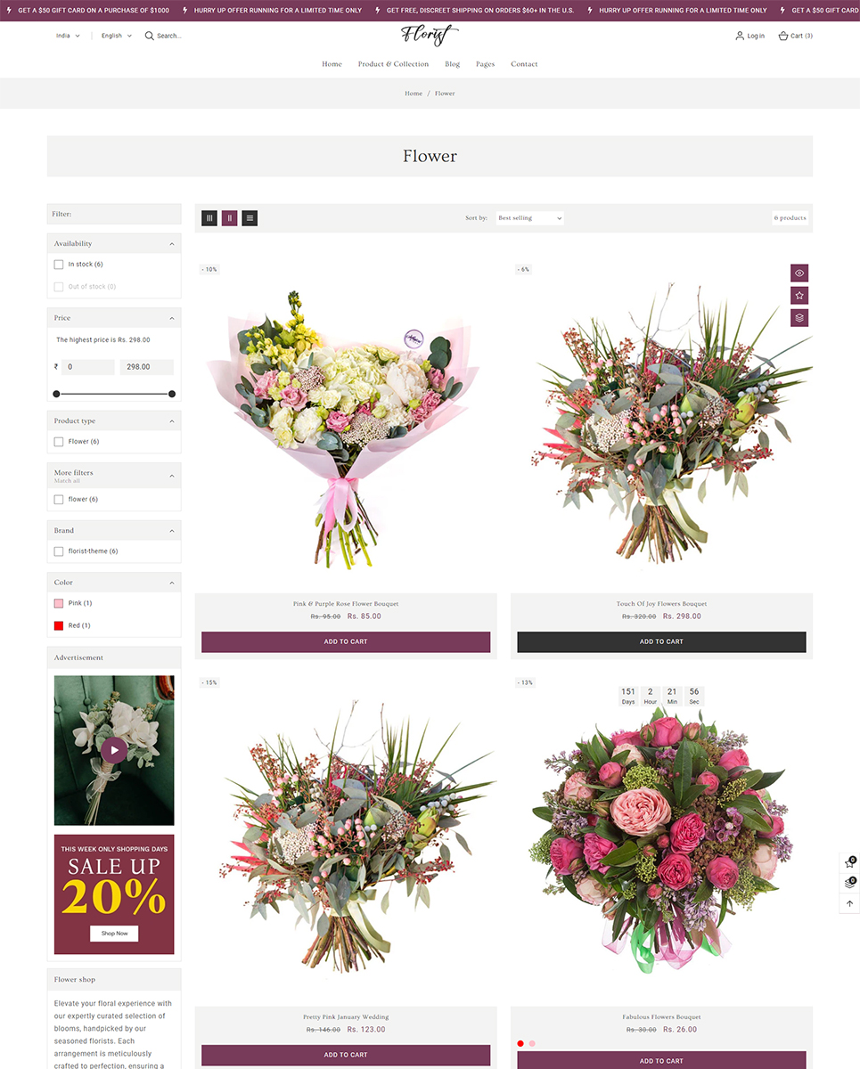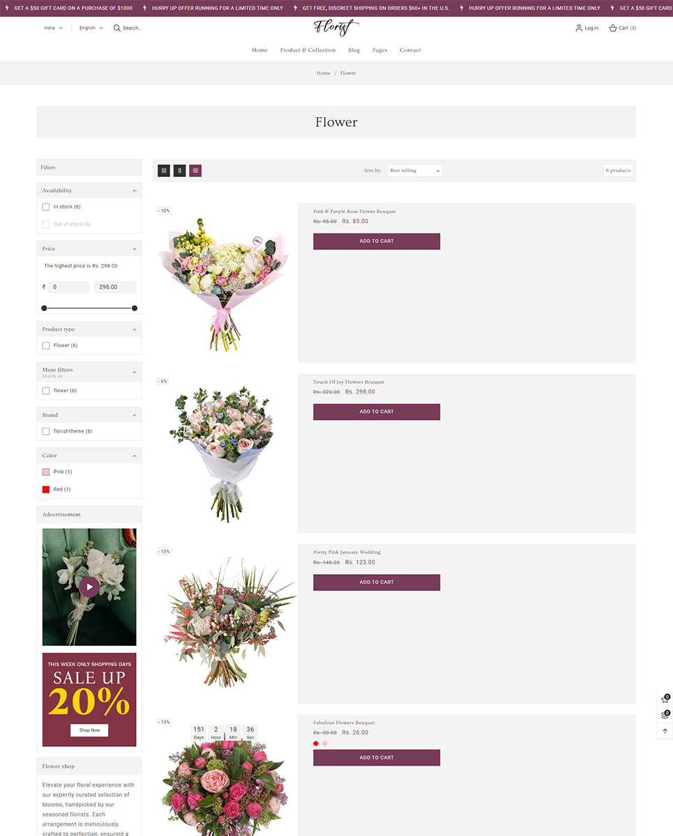 With Florist, you are not just creating an online store; you are building a brand that stands out in the competitive e-commerce landscape. Leverage the power of Florist to deliver an exceptional shopping experience, enhance your SEO performance, and grow your business with confidence. Start building your perfect flower and Valentine gift store today with Florist and enjoy a feature-rich, SEO-optimized, and visually stunning Shopify theme that sets your business apart from the competition.