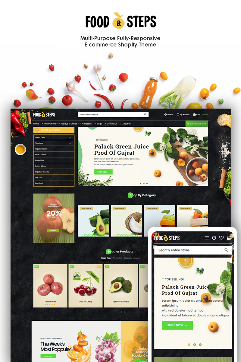 Food Steps - The Organic & Food Responsive Shopify eCommerce Template supported with RTL Supported and Fully Responsive premium shopify templates.