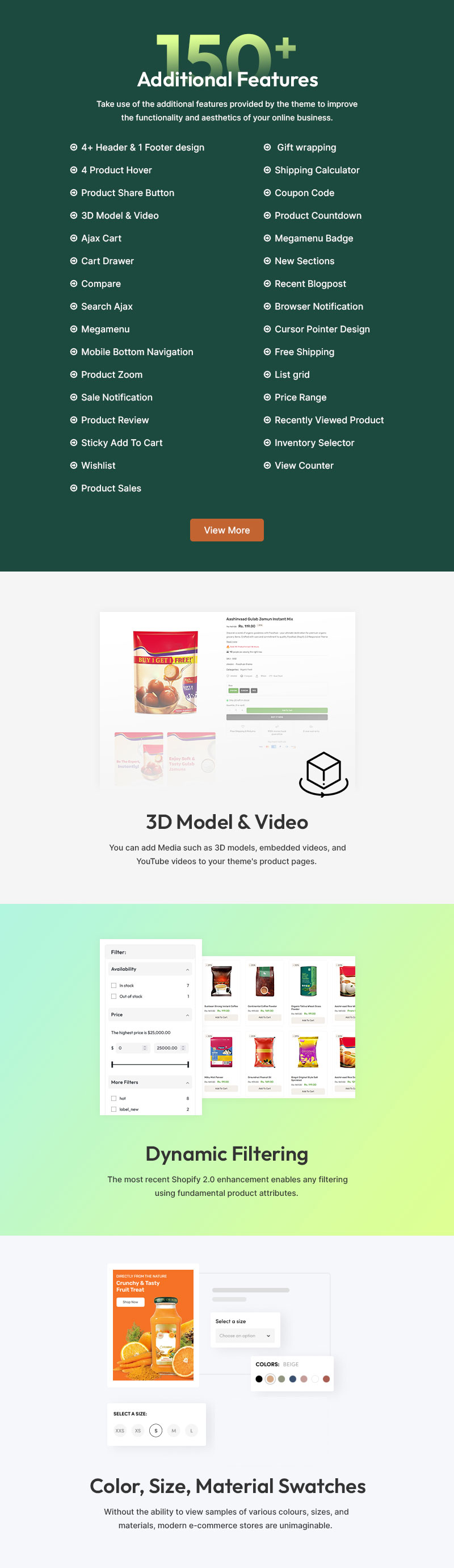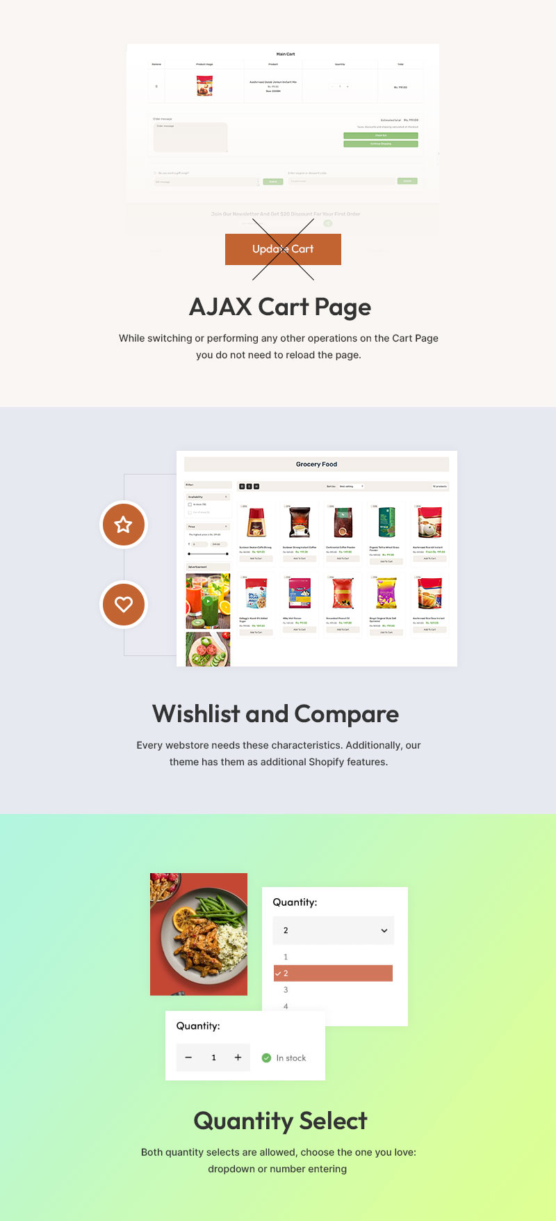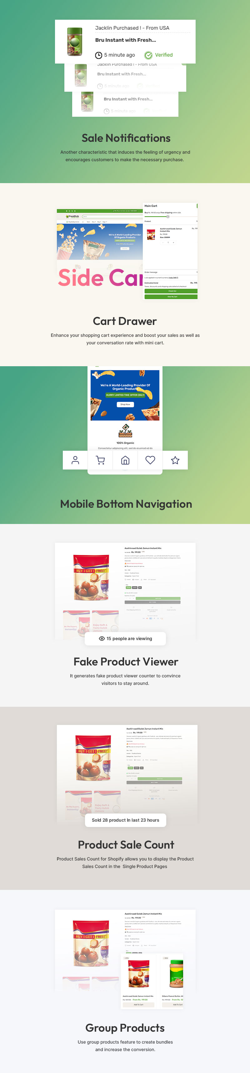Customization is easy with FoodHub’s drag-and-drop editor, allowing you to personalize colors, fonts, and layouts to align with your brand’s identity. The smart filtering and search system lets shoppers quickly browse by category, dietary preferences, bestsellers, and new arrivals, ensuring a smooth shopping journey. Each product page is designed to increase engagement and conversions, featuring ingredient details, nutritional information, high-resolution images, and customer reviews.