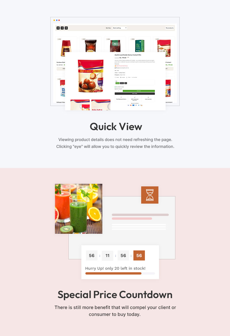 To maximize sales and customer loyalty, FoodHub includes powerful marketing features such as discount badges, bulk purchase offers, subscription-based shopping, and promotional banners. Social media integration enables easy sharing of deals, recipes, and product highlights on Instagram, Facebook, and Pinterest. With multi-currency and multi-language support, you can expand your grocery business to a global audience.