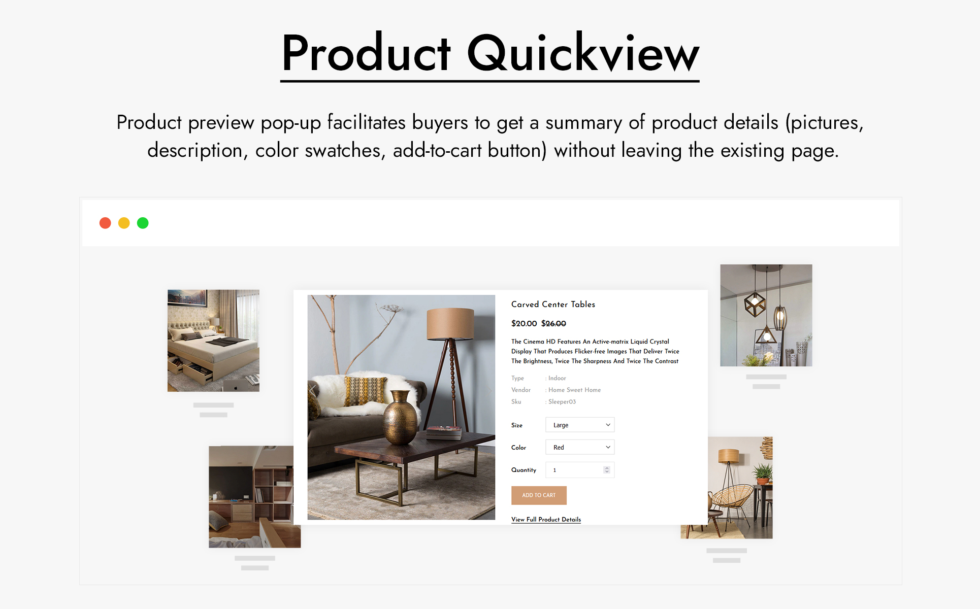 You will get all the listed features implemented on your online store with Premium Starter Kit for Shopify. If you do not like wasting time and paying monthly fees for APPs, you can get useful features on your site within 24-48 hours or less and only pay once. Listed above features are theme-specific.