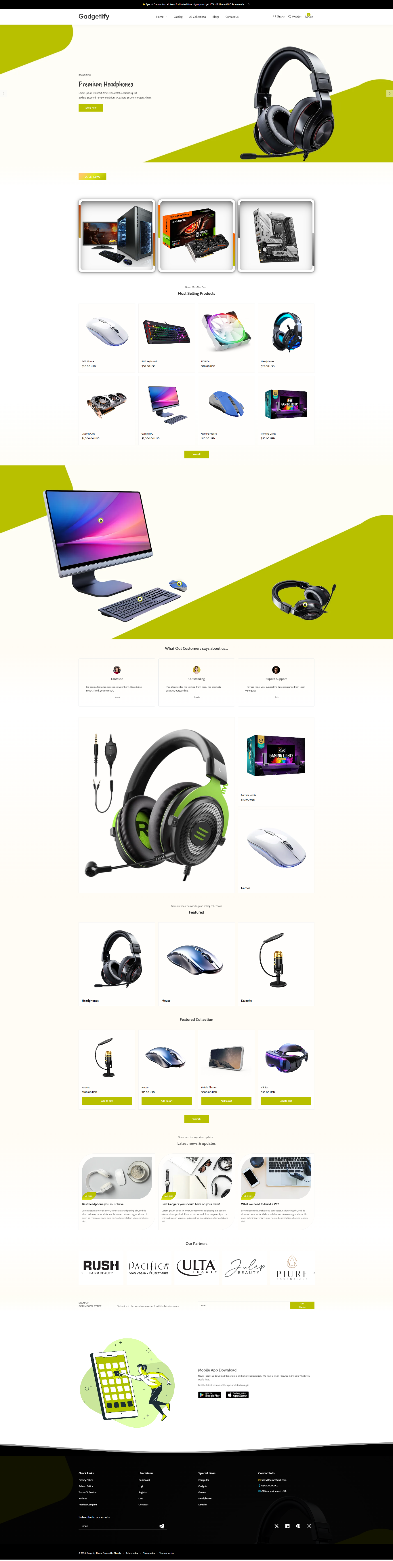 The gorgeous responsive Gadgetify Shopify theme is perfect for all types of accessories, clean, digital stores, electronic, electronics, gadgets stores, mobile, online stores, phone stores, smartwatches, gadgets, technology, computers, earphones, and supermarkets. Gadgetify - Electronics & Gadgets Ecommerce Shopify 2.0 Theme is elegant, customizable, and colorful.