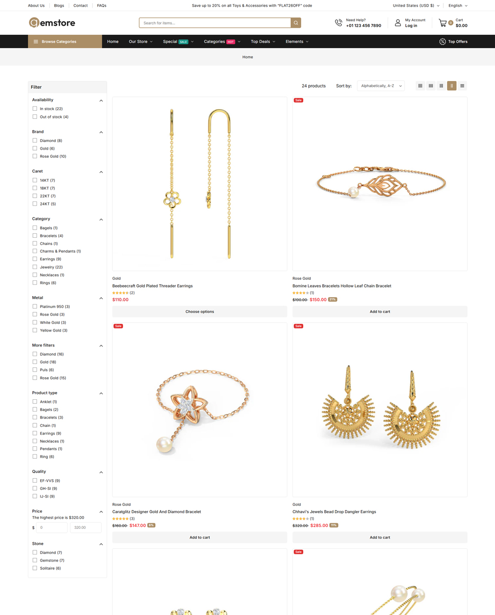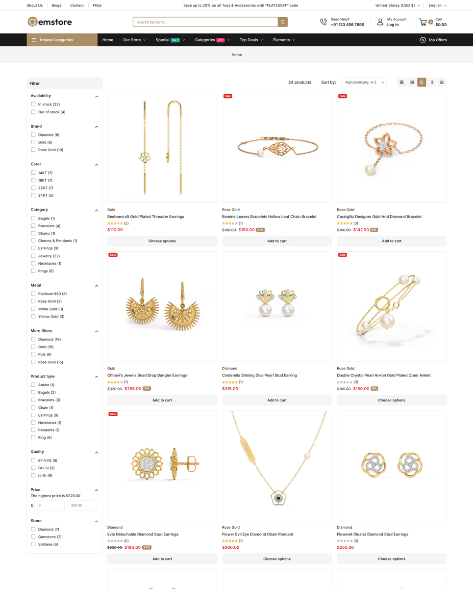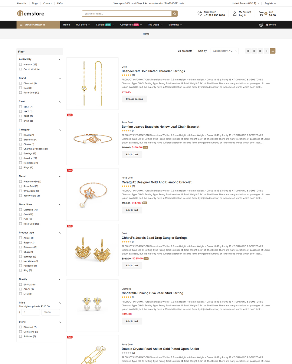 Gemstore’s sleek and modern design highlights your products with style and professionalism. Its responsive layout ensures flawless performance on desktops, tablets, and smartphones, providing a seamless shopping experience for every customer.