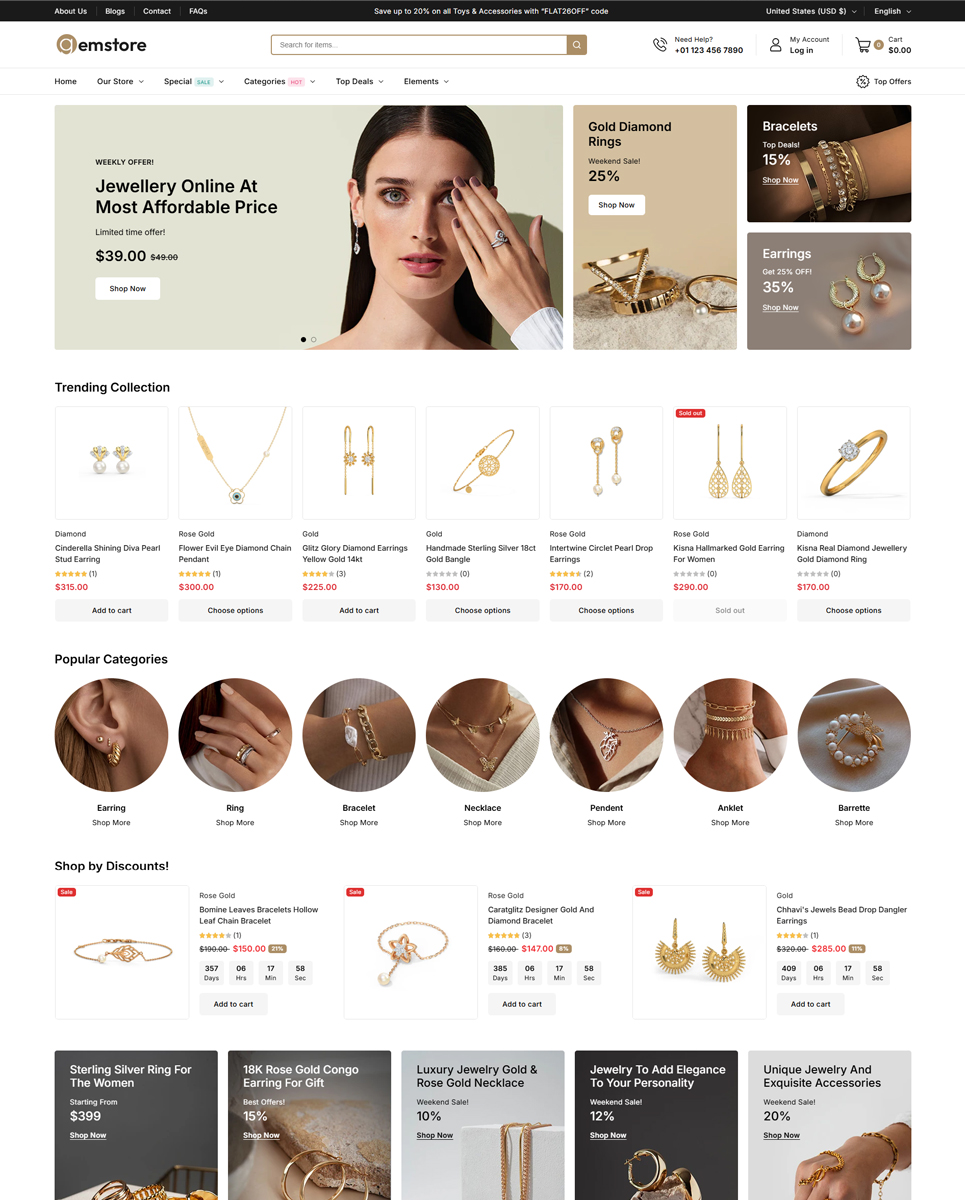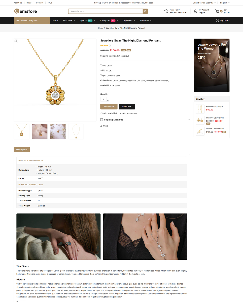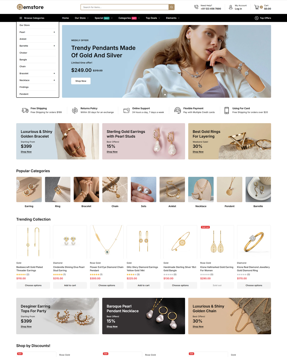 - Elegant Product Displays: Showcase jewelry, watches, and more with high-quality product pages and galleries.