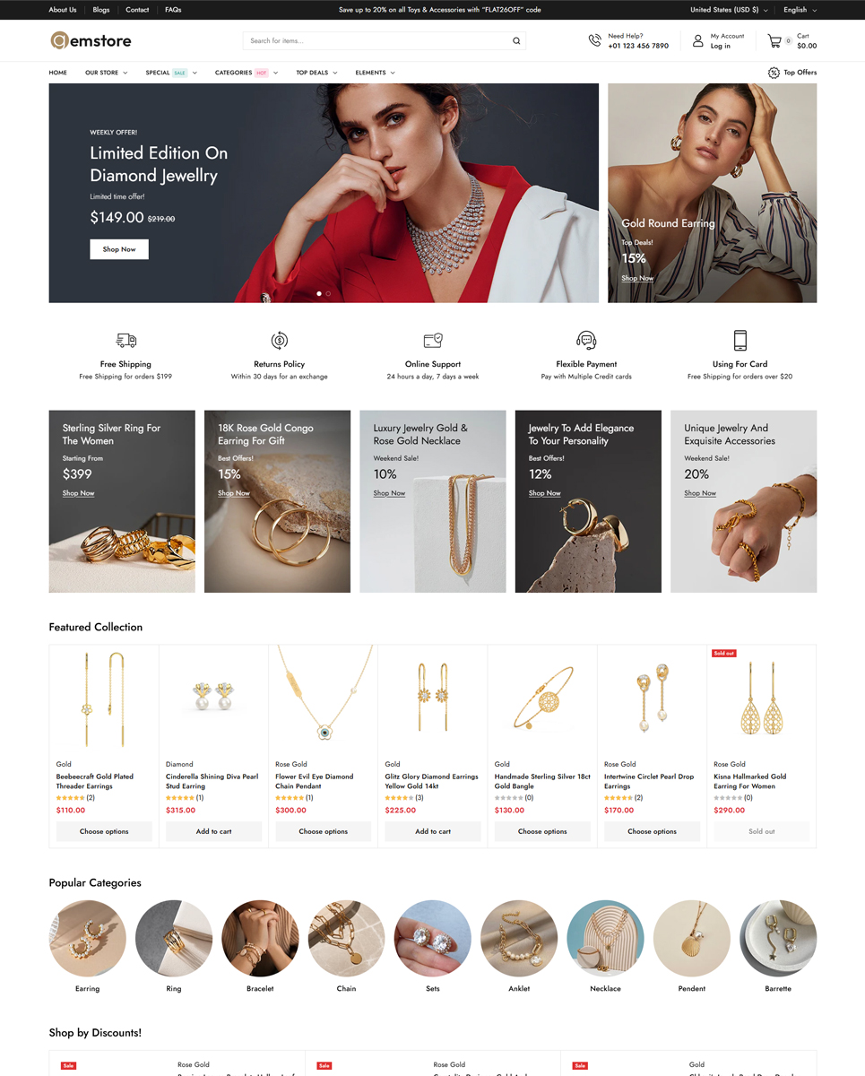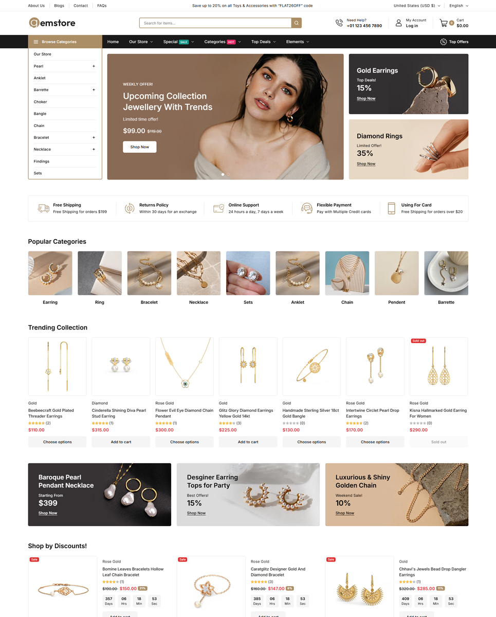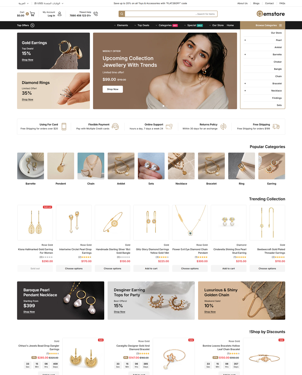 - Elegant Product Displays: Showcase jewelry, watches, and more with high-quality product pages and galleries.