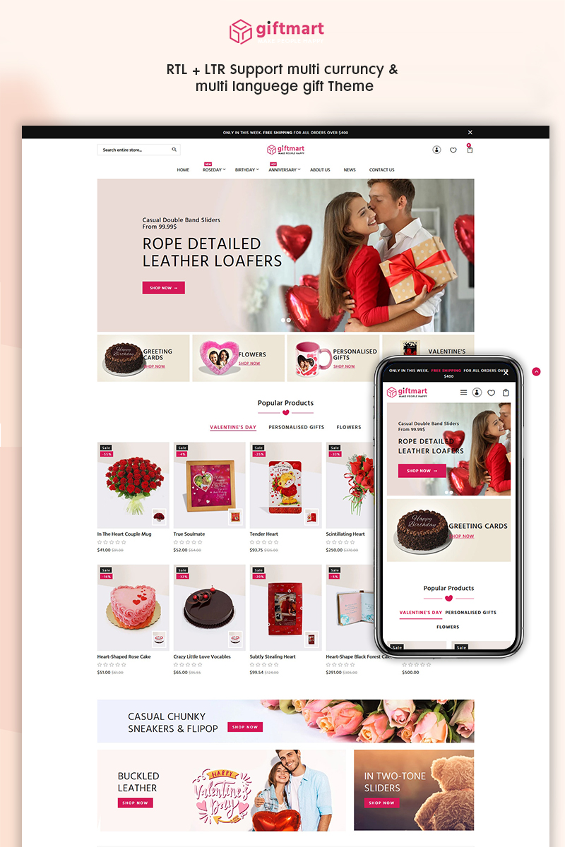 Giftmart - The Gift & Fashion Responsive Shopify eCommerce Template supported with RTL Supported and Fully Responsive premium shopify templates.