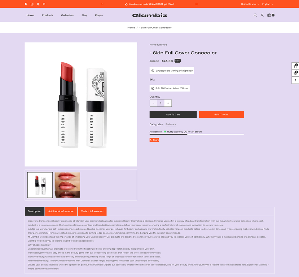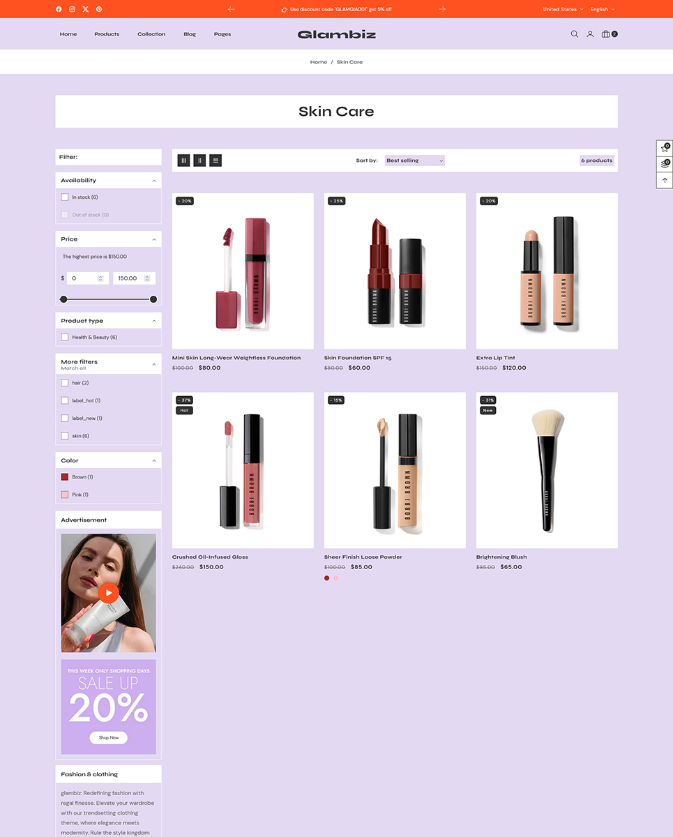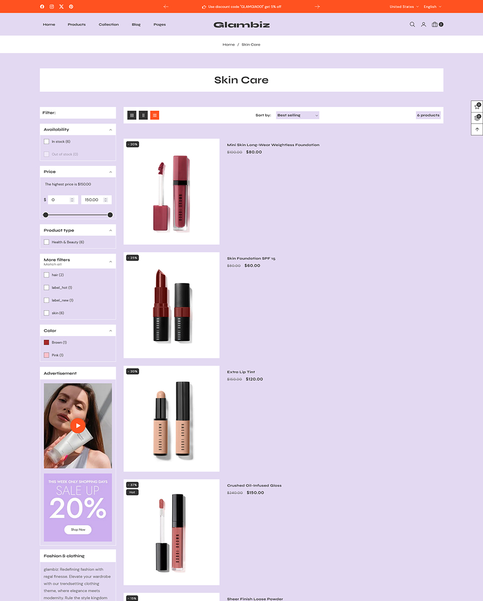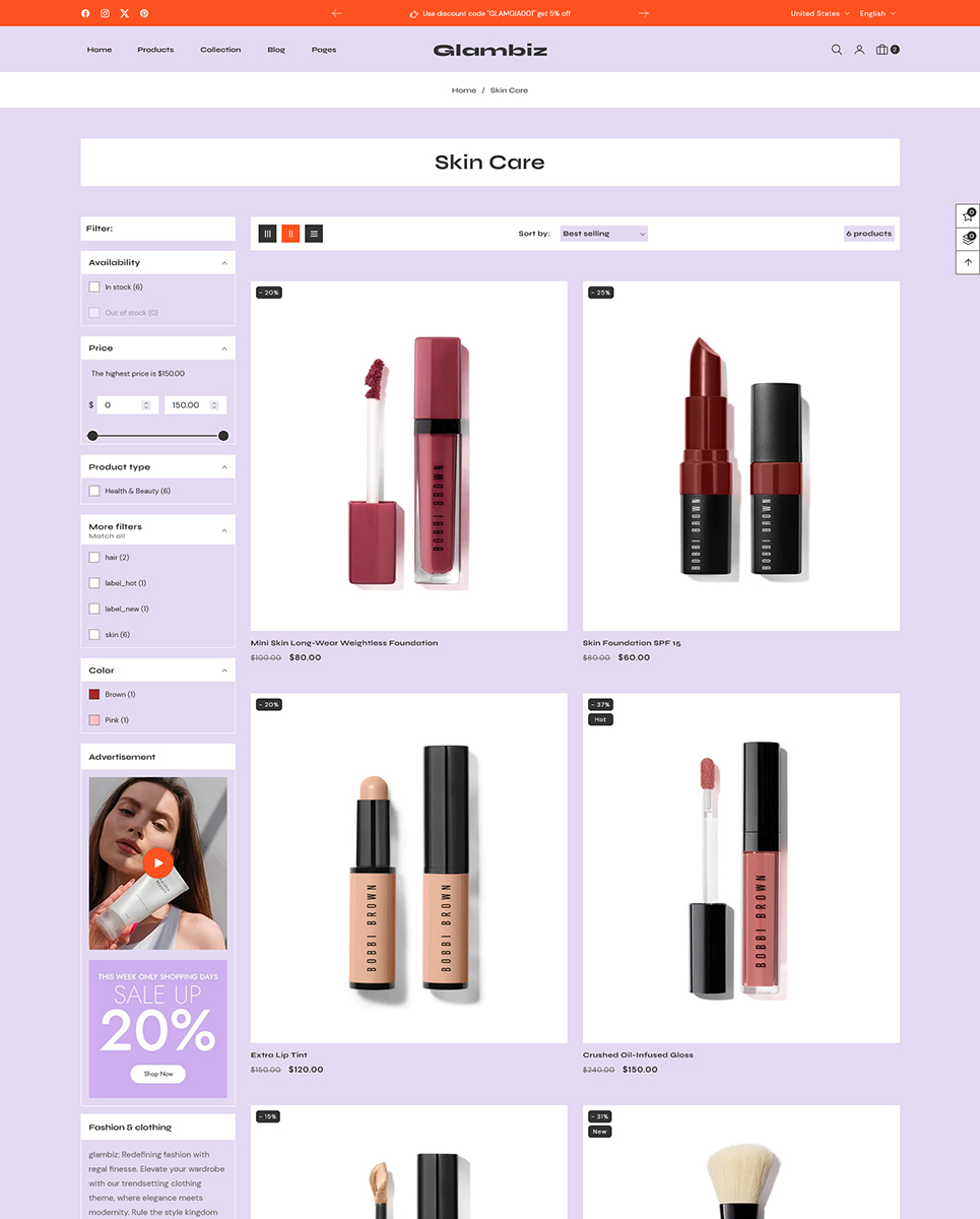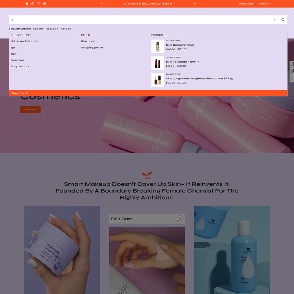 SEO optimization is at the core of Glambiz’s design philosophy. With meticulously crafted meta tags, clean code, and lightning-fast load times, your store achieves prominent visibility in search results. This strategic approach not only attracts organic traffic but also converts visitors into loyal customers, driving sustained growth for your beauty brand.