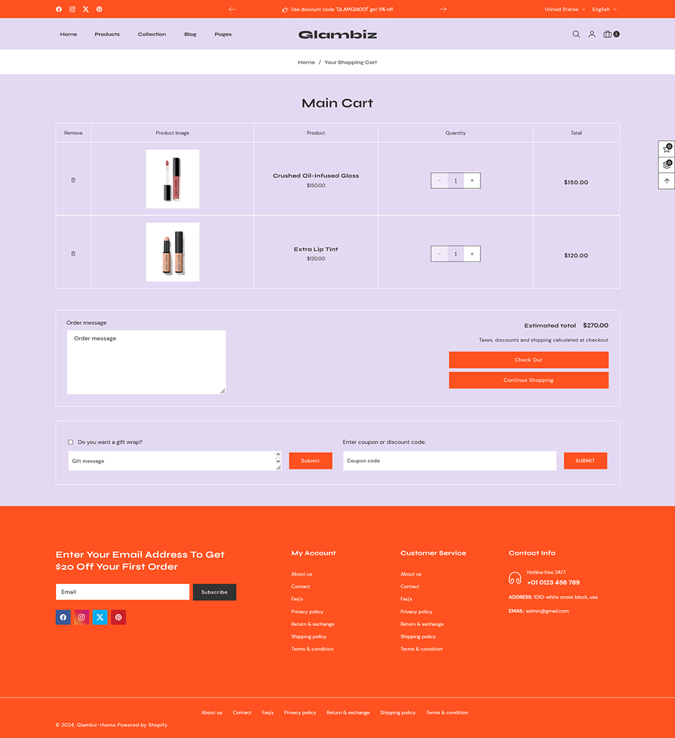 Glambiz - Beauty, Cosmetics & Skincare Multipurpose Shopify 2.0 Responsive Theme Shopify Theme