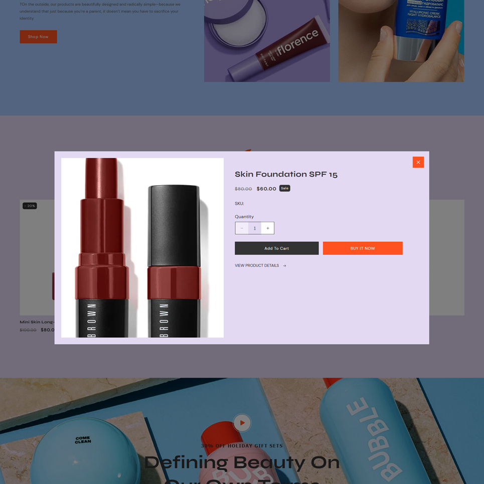 Choose Glambiz - Beauty, Cosmetics & Skincare Multipurpose Shopify 2.0 Responsive Theme to transform your online beauty store into a thriving ecommerce destination. Elevate your brand’s online presence, attract a global audience, and achieve sustainable growth with Glambiz’s tailored solutions for beauty, cosmetics, and skincare retailers.