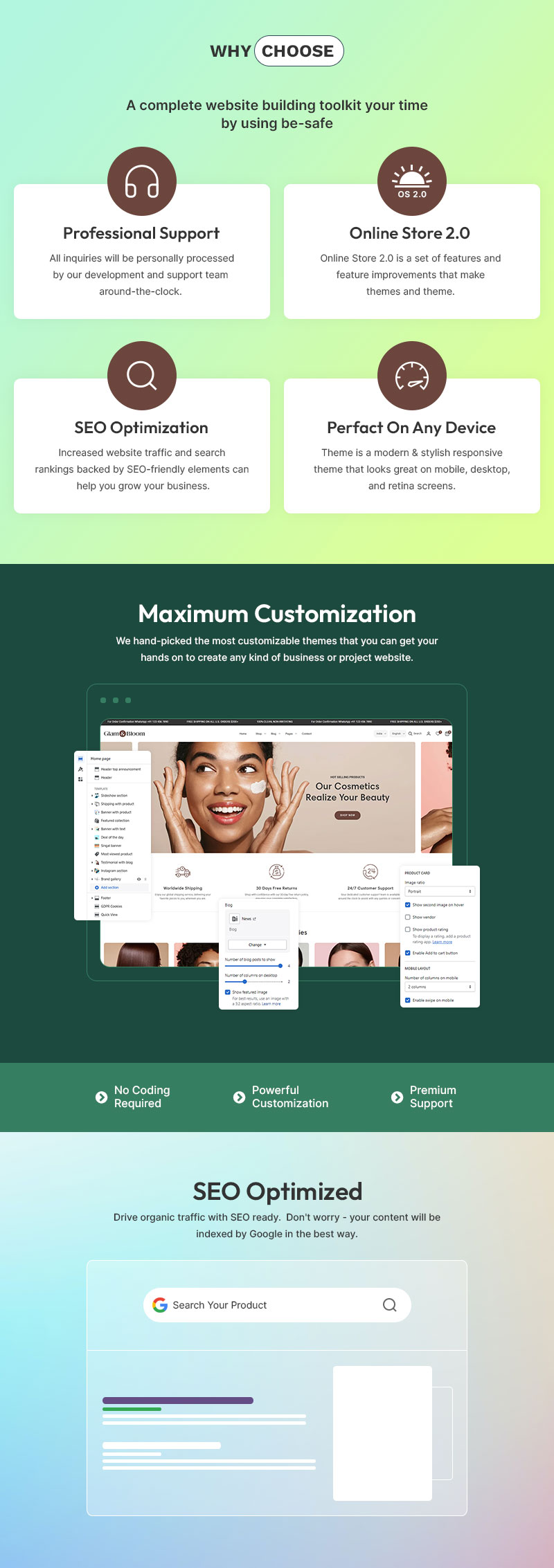 GlamBloom is a luxurious and modern Shopify 2.0 theme designed for cosmetic brands, beauty salons, skincare stores, and makeup retailers. Whether you sell high-end beauty products, organic skincare, premium makeup, or salon services, this theme provides a sophisticated and high-converting shopping experience that enhances your brand’s presence. With its elegant design, high-resolution product showcases, and seamless navigation, GlamBloom ensures a visually stunning and smooth shopping experience on desktops, tablets, and mobile devices. The fully responsive, SEO-optimized structure helps your store rank higher on search engines, bringing more beauty enthusiasts to your website.