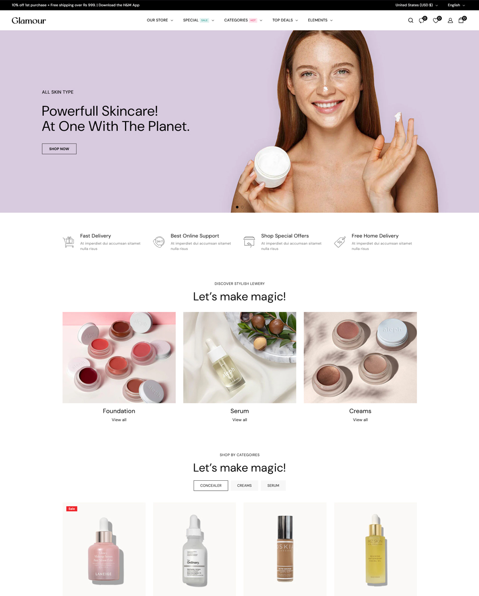 Glamour – Skincare, Beauty & Cosmetic Shopify Responsive Theme