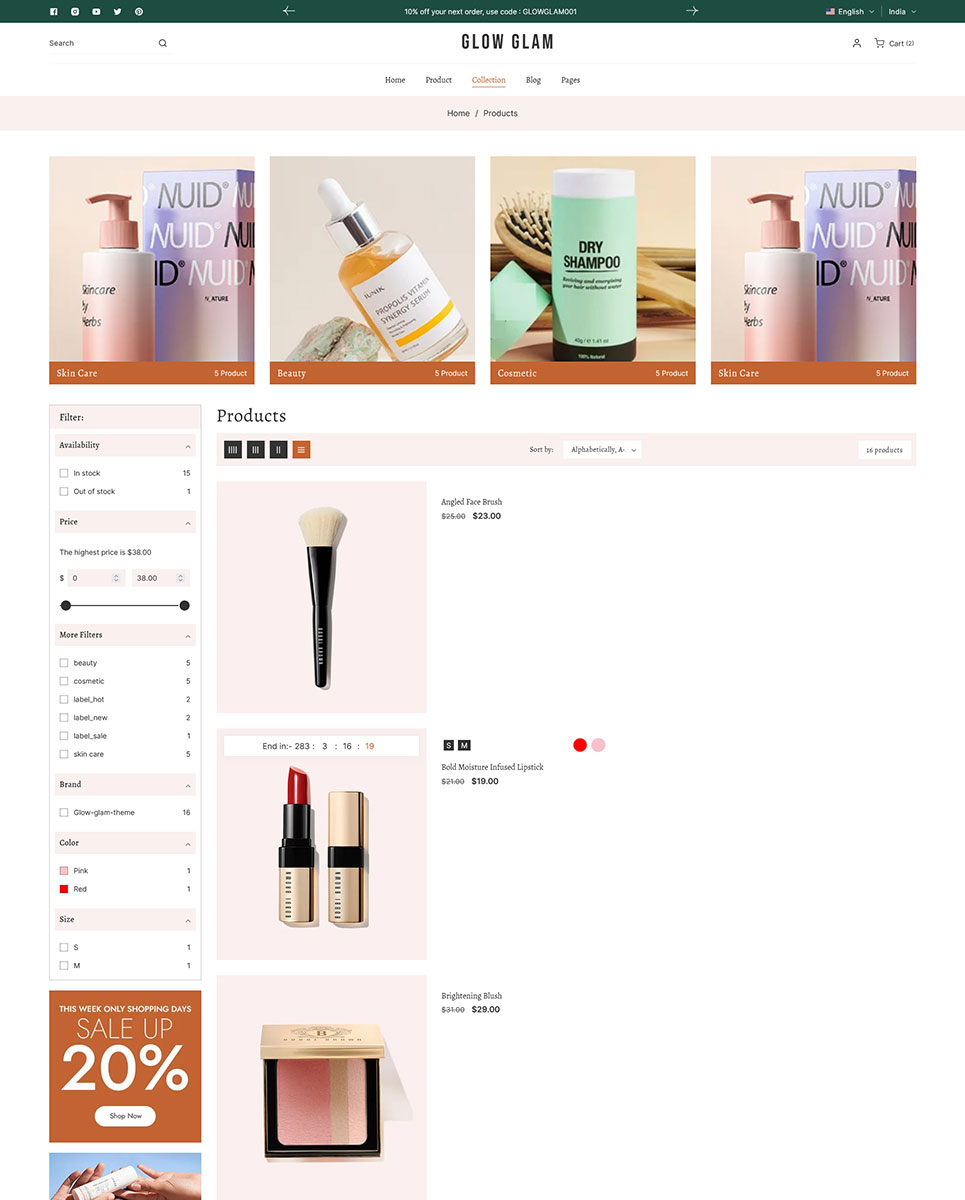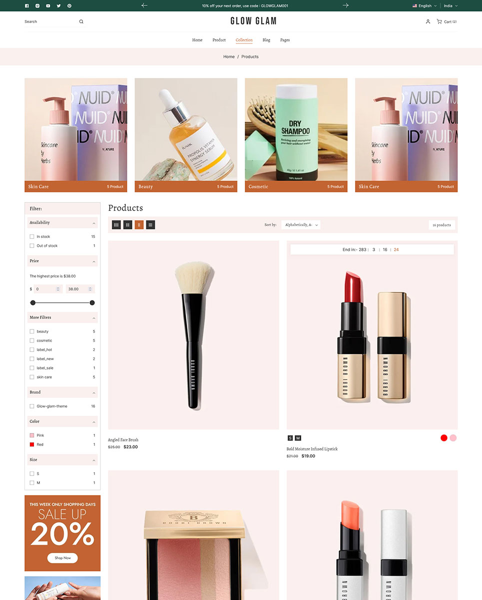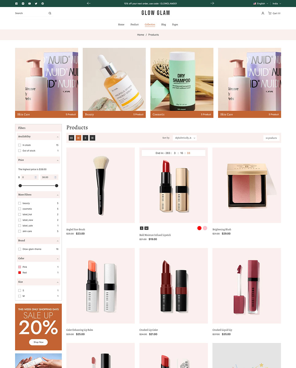 Glowglam - Beauty, Cosmetics & Skincare Store Multipurpose Shopify 2.0 Responsive Theme Shopify Theme