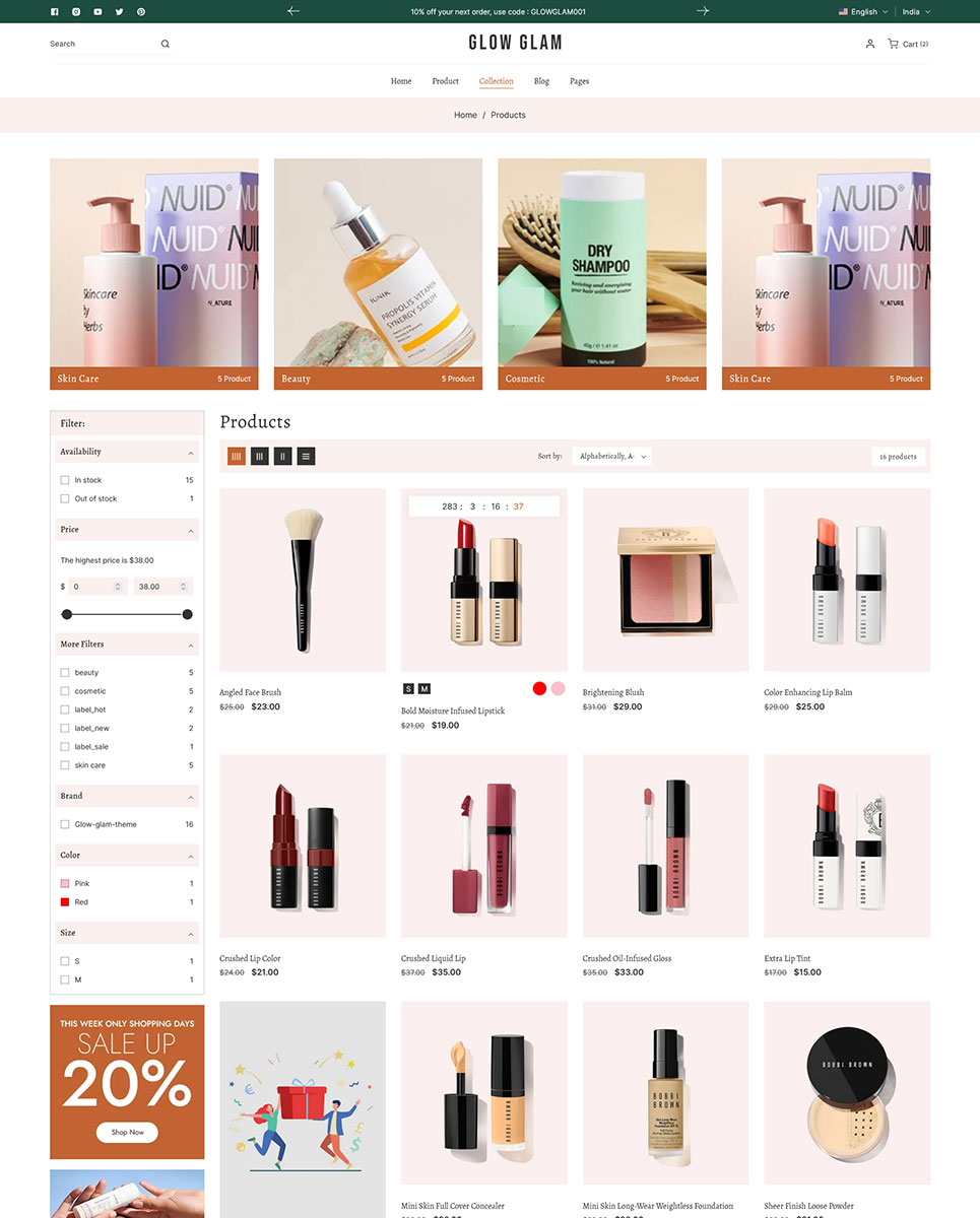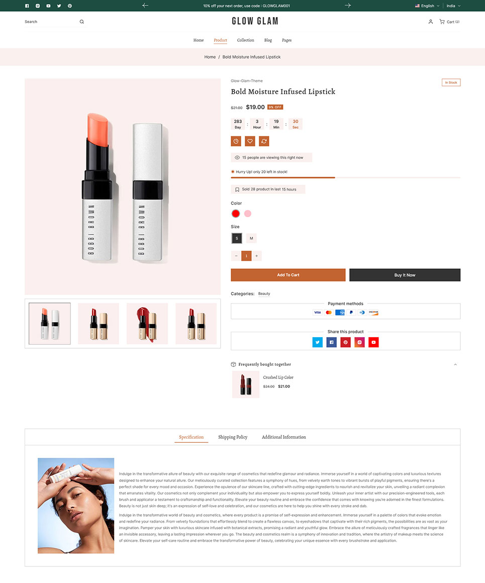 Discover Glowglam, the ultimate Shopify 2.0 theme designed exclusively for beauty, cosmetics, and skincare stores. Elevate your online presence with Glowglam’s seamless fusion of aesthetic appeal and robust functionality, tailored to ensure your beauty products shine across all devices.