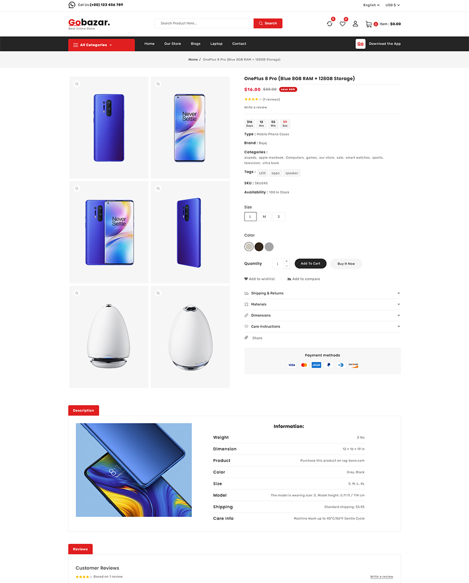 Gobazar - Electronic Marketplace Multipurpose Responsive Shopify Theme is a responsive drag and drops section Shopify theme. It also has a fully responsive design that is ready for unique & smart electronic gadgets & electronic stores. This theme has a user-friendly and mobile responsive interface to provide a convenient user experience. Gobazar is all about combining a clean palette, strong typography, dynamic banners, and our robust theme sections. Users can easily add products to their wishlist and share them with its social media integration feature.