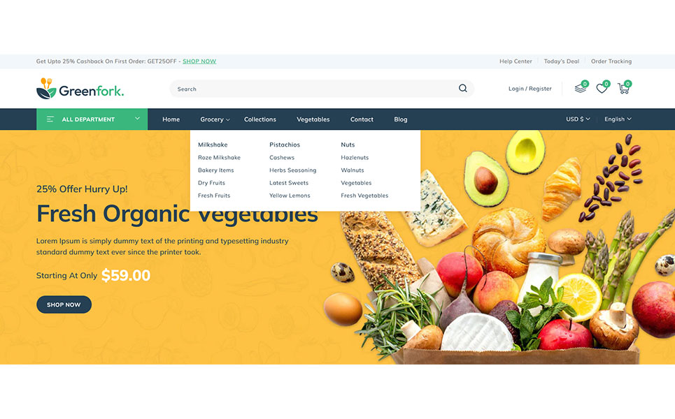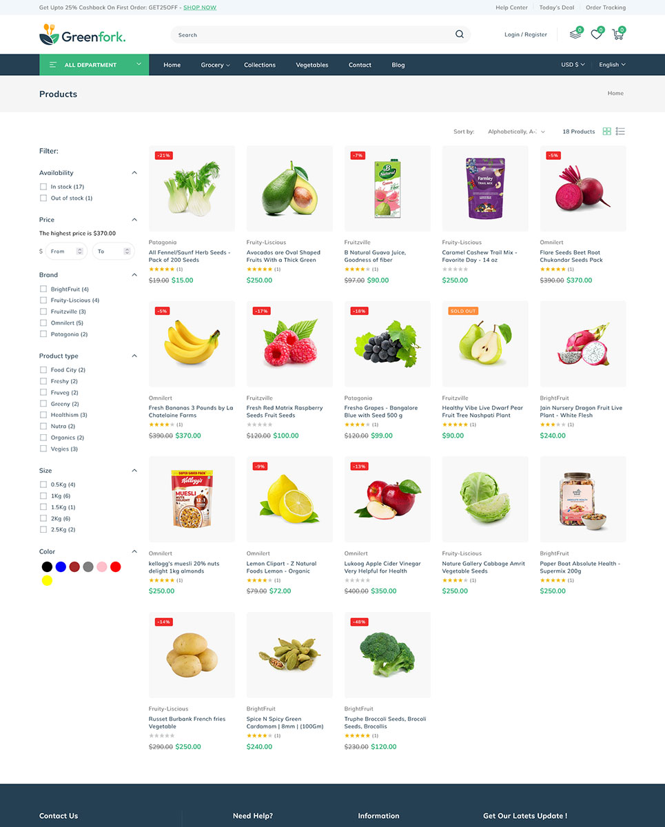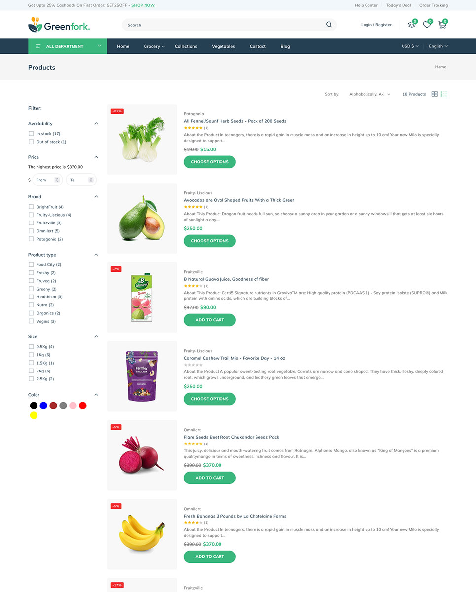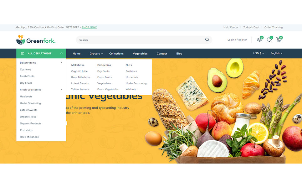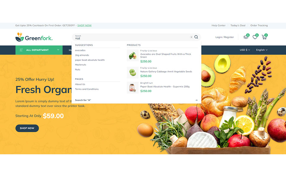 Greenfork, the Shopify 2.0 Responsive Theme designed exclusively for vegetable shop, fruits stores, organic & dairy products online store. Packed with unique features, Greenfork transforms your online shopping experience, offering a harmonious blend of aesthetics and cutting-edge functionality. Using dynamic slideshow banner section you can showcase your freshest produce, seasonal specials, and irresistible offers in a visually captivating manner. With our Section Builder, you can manage your webpage sections effortlessly.