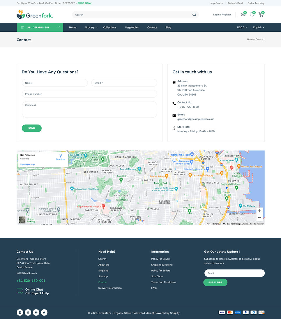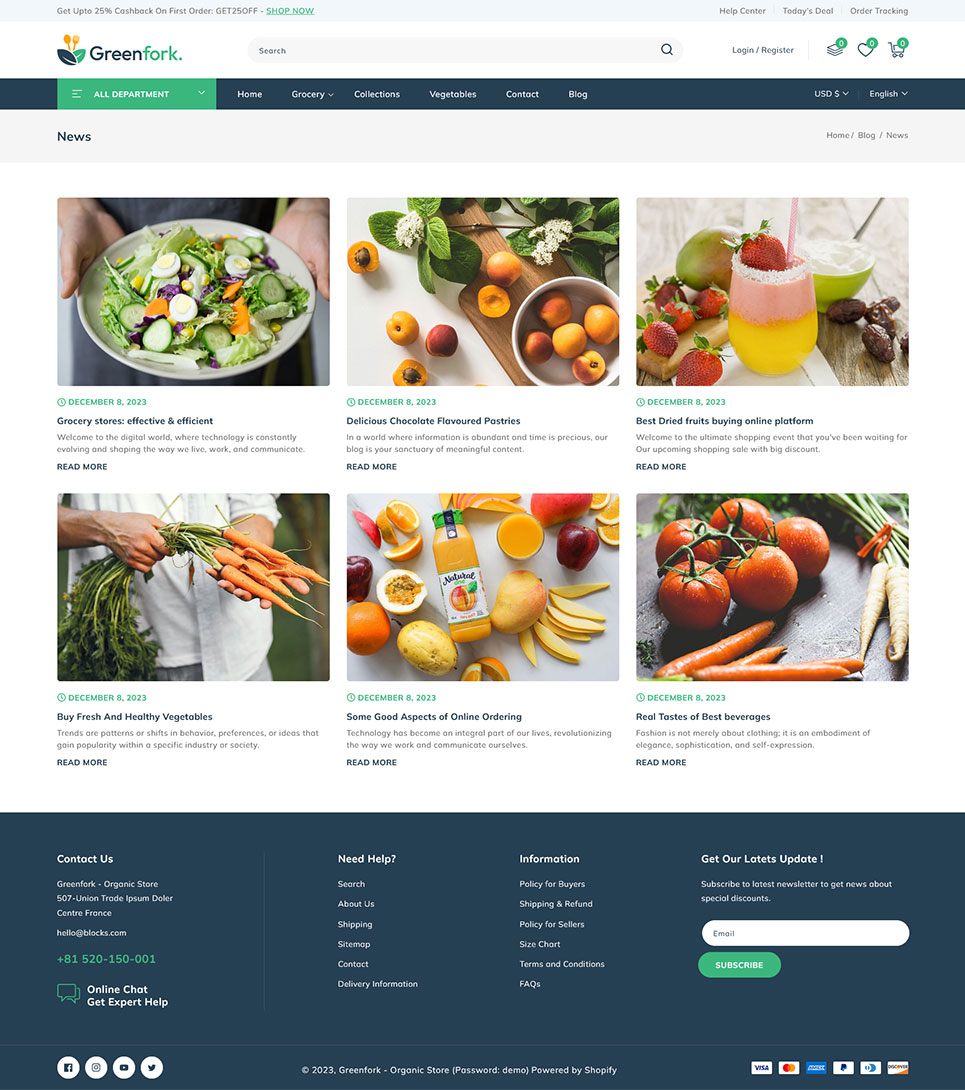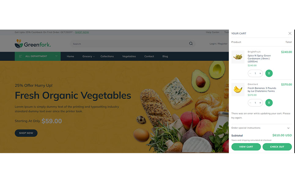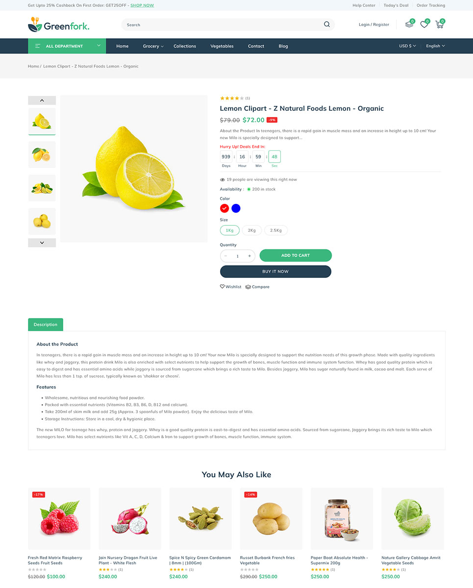 Greenfork, the Shopify 2.0 Responsive Theme designed exclusively for vegetable shop, fruits stores, organic & dairy products online store. Packed with unique features, Greenfork transforms your online shopping experience, offering a harmonious blend of aesthetics and cutting-edge functionality. Using dynamic slideshow banner section you can showcase your freshest produce, seasonal specials, and irresistible offers in a visually captivating manner. With our Section Builder, you can manage your webpage sections effortlessly.