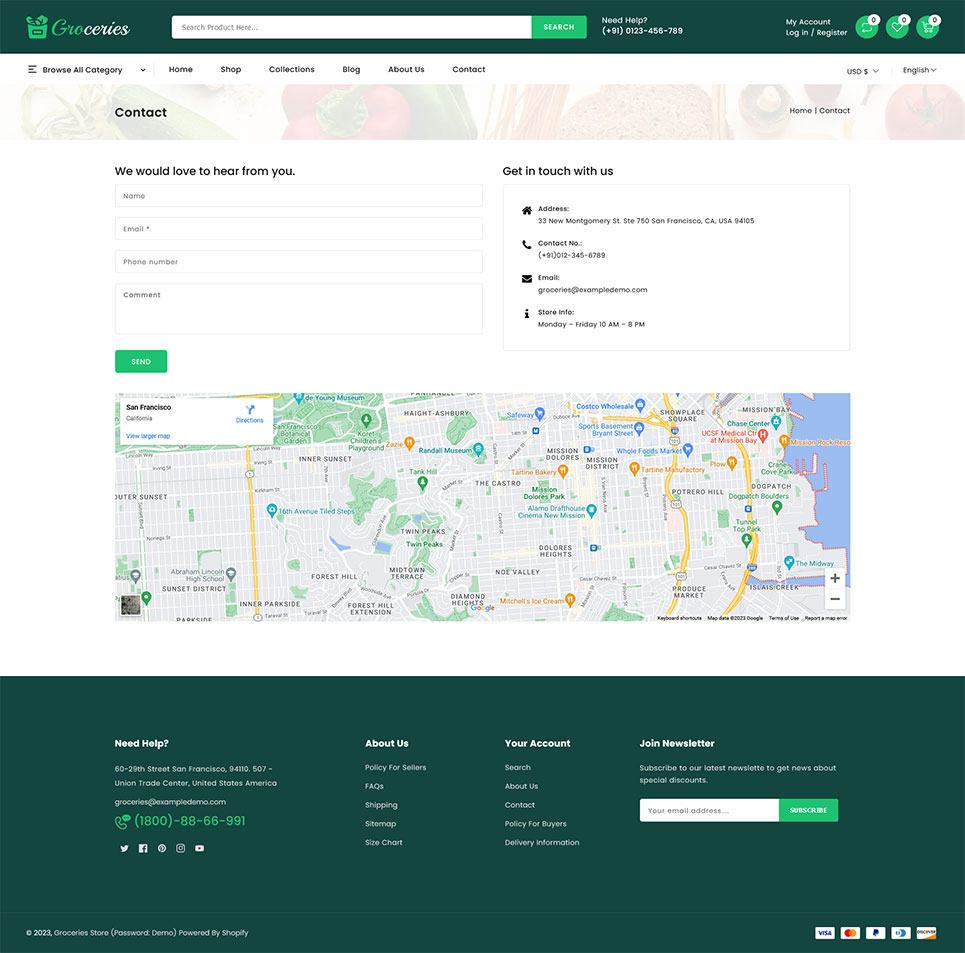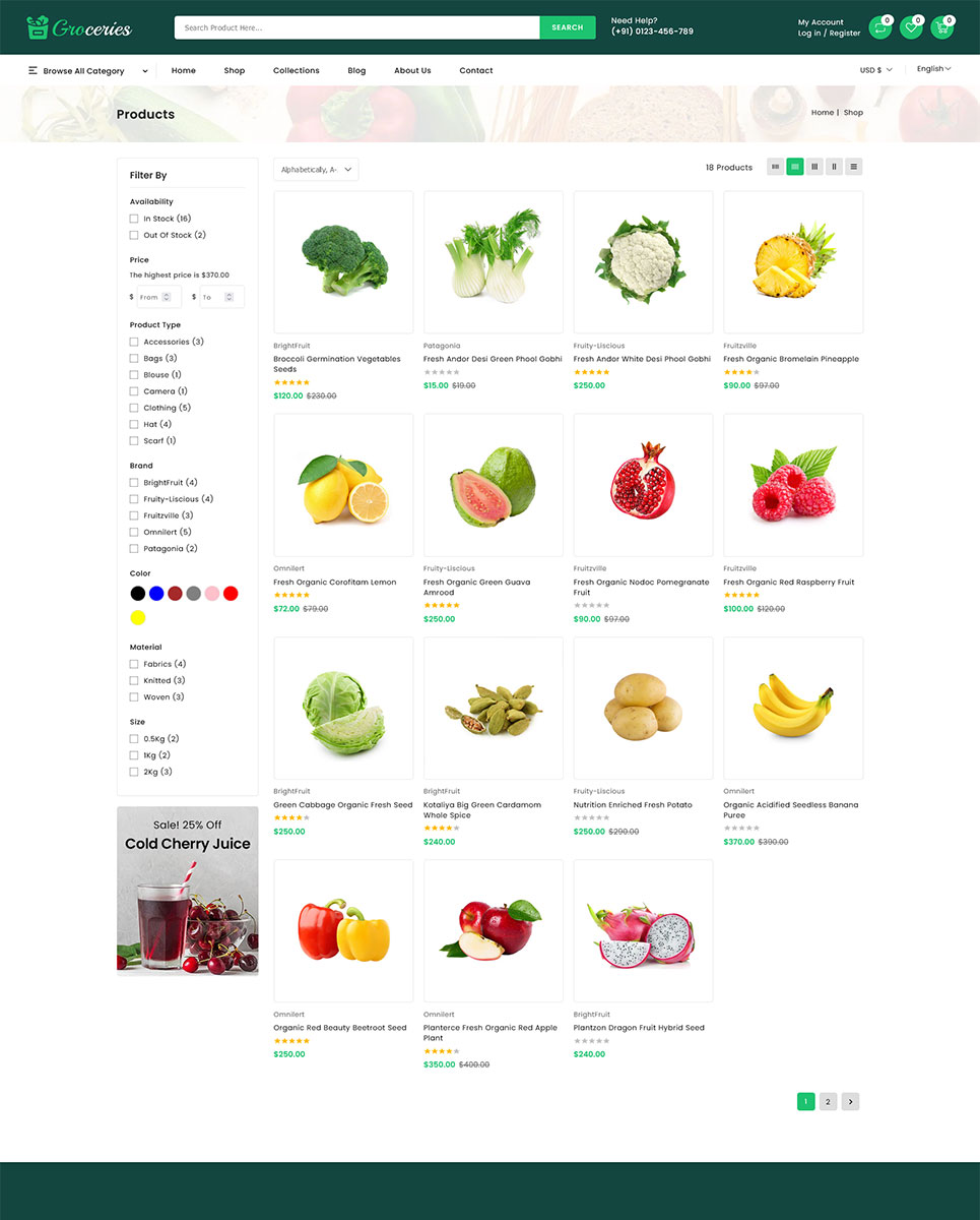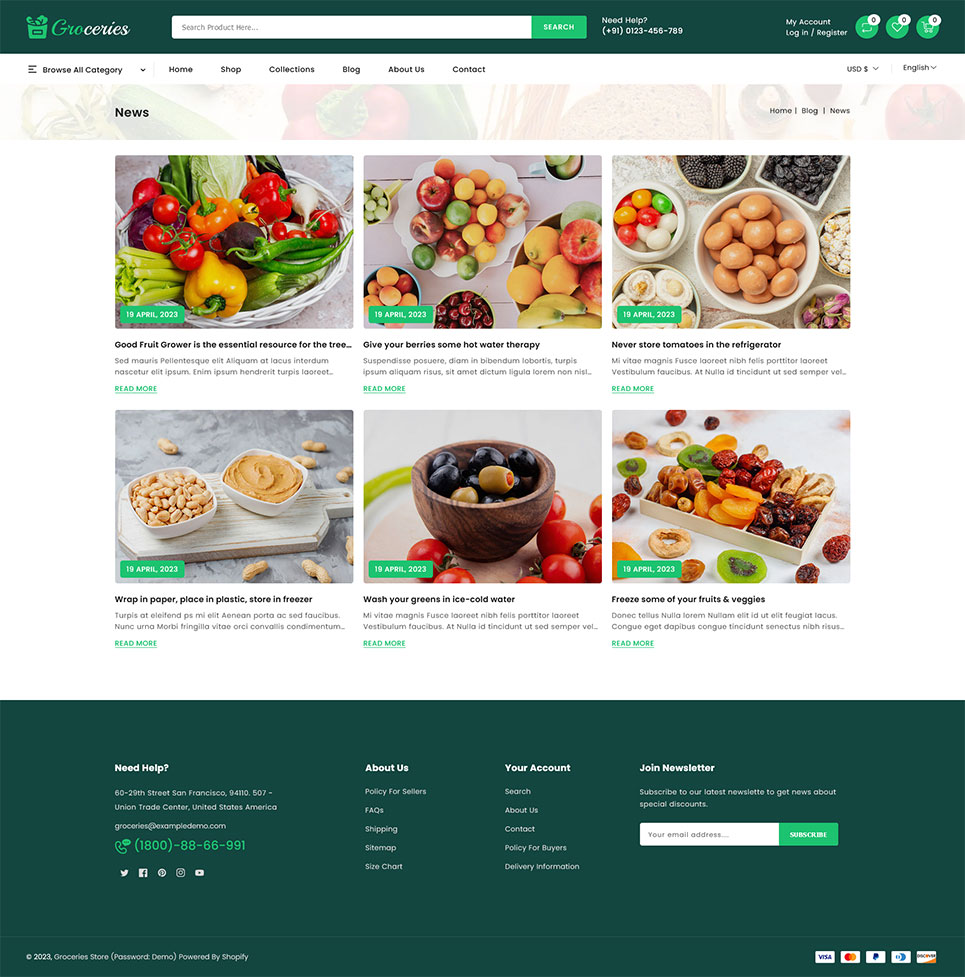 Groceries is an eye-catching Shopify theme that is simple to use and install. Groceries now allow you to create and promote your website in a matter of minutes. This theme's superb performance is validated on any platform, from personal PCs to all mobile devices. Furthermore, this Shopify Theme is an excellent