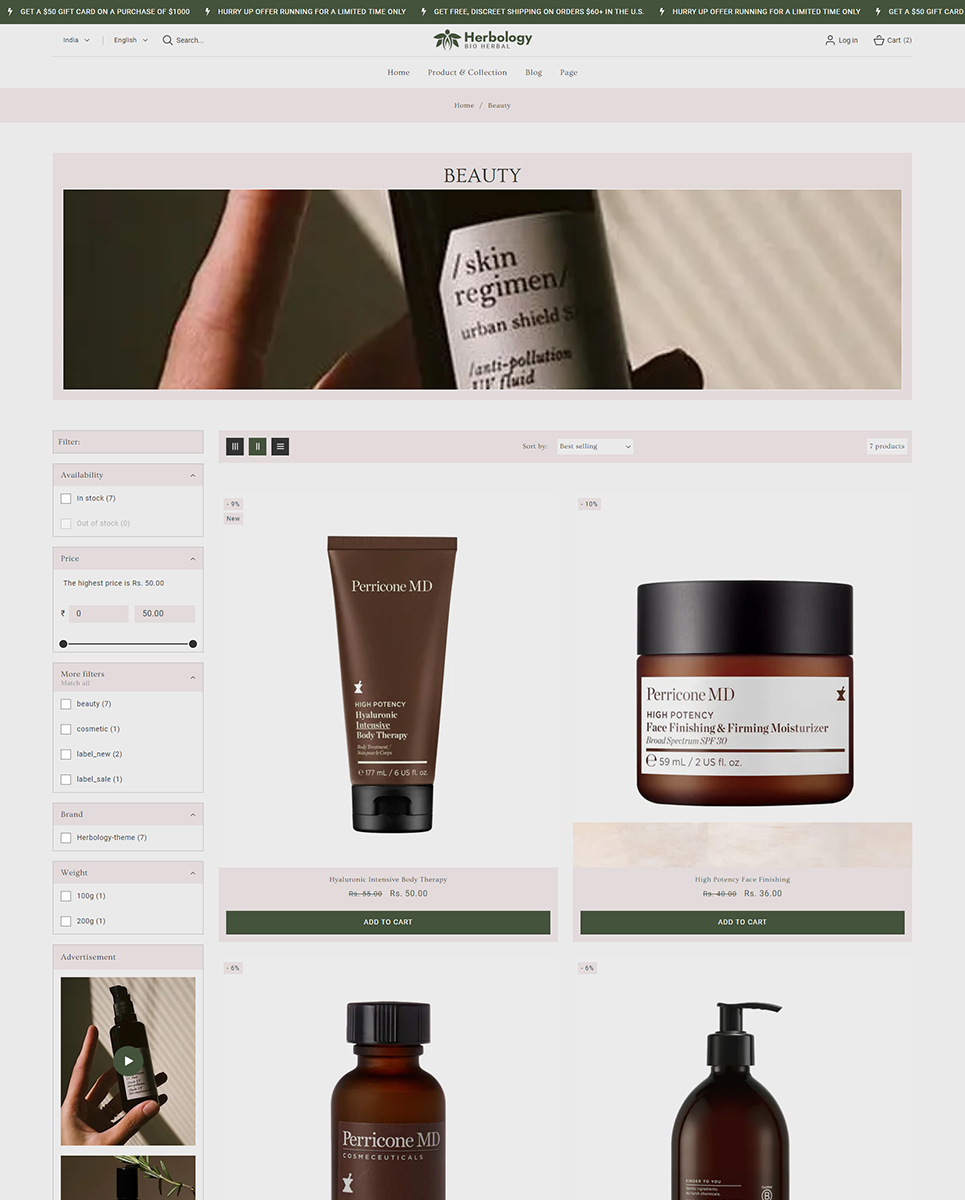 Discover Herbology, the ultimate multipurpose Shopify 2.0 theme crafted specifically for beauty, cosmetics, and skincare stores. Elevate your online presence with Herbology’s seamless blend of aesthetic elegance and robust functionality, designed to make your beauty products shine on every screen. This theme is perfect for brands focusing on luxury skincare treatments, organic beauty essentials, or trendsetting cosmetics. Herbology’s responsive design guarantees stunning visuals across desktops, tablets, and smartphones, ensuring your products captivate and convert visitors effectively.