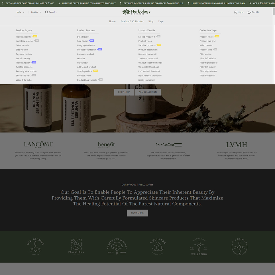 At the heart of Herbology lies its seamless compatibility with Shopify 2.0, offering advanced features that enhance user experience and optimize your store for high search engine rankings. Whether you’re showcasing revitalizing serums, natural makeup lines, or anti-aging solutions, Herbology ensures your products look their best. Customization is effortless with Herbology’s intuitive tools. Tailor your store’s appearance effortlessly—adjust colors, fonts, and layouts without touching a single line of code. The drag-and-drop interface empowers you to create a distinctive brand identity that resonates with your discerning clientele. Personalize your store to match your unique brand aesthetic and provide a consistent shopping experience that reflects your brand’s values and style.