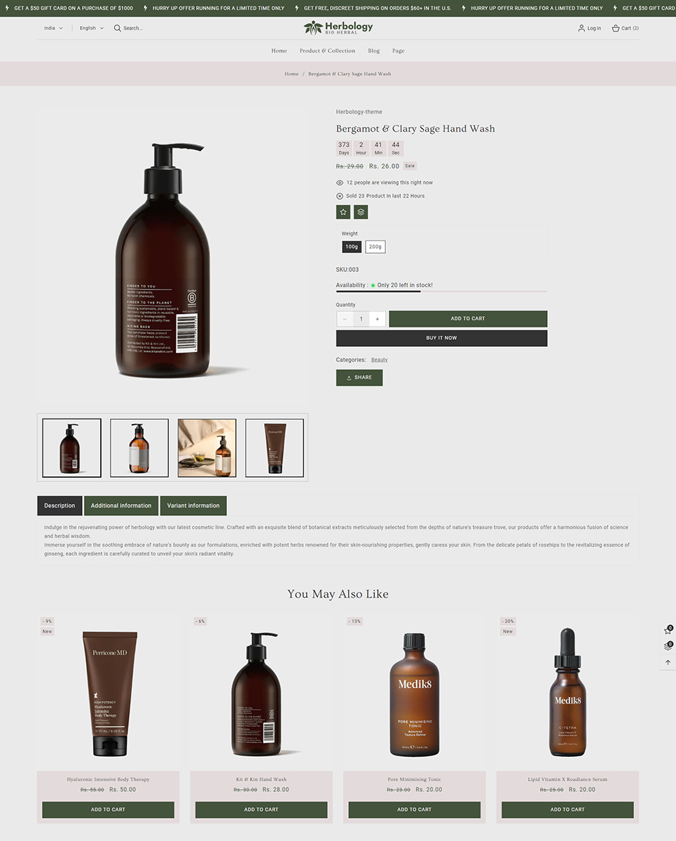 Herbology excels in presenting your products attractively. High-resolution images, detailed descriptions, and customer reviews are seamlessly integrated to enhance engagement and drive conversions. The theme’s clean and modern design ensures your products stand out, creating an inviting shopping experience that encourages customers to explore more. SEO is at the core of Herbology’s design philosophy. With optimized meta tags, clean code, and lightning-fast load times, Herbology ensures your store ranks prominently in search results. This strategic approach attracts organic traffic, converting visitors into loyal customers and driving sustained growth for your beauty brand. Leveraging Herbology’s built-in SEO features, you can boost your visibility on search engines, enhancing your chances of attracting and retaining customers.