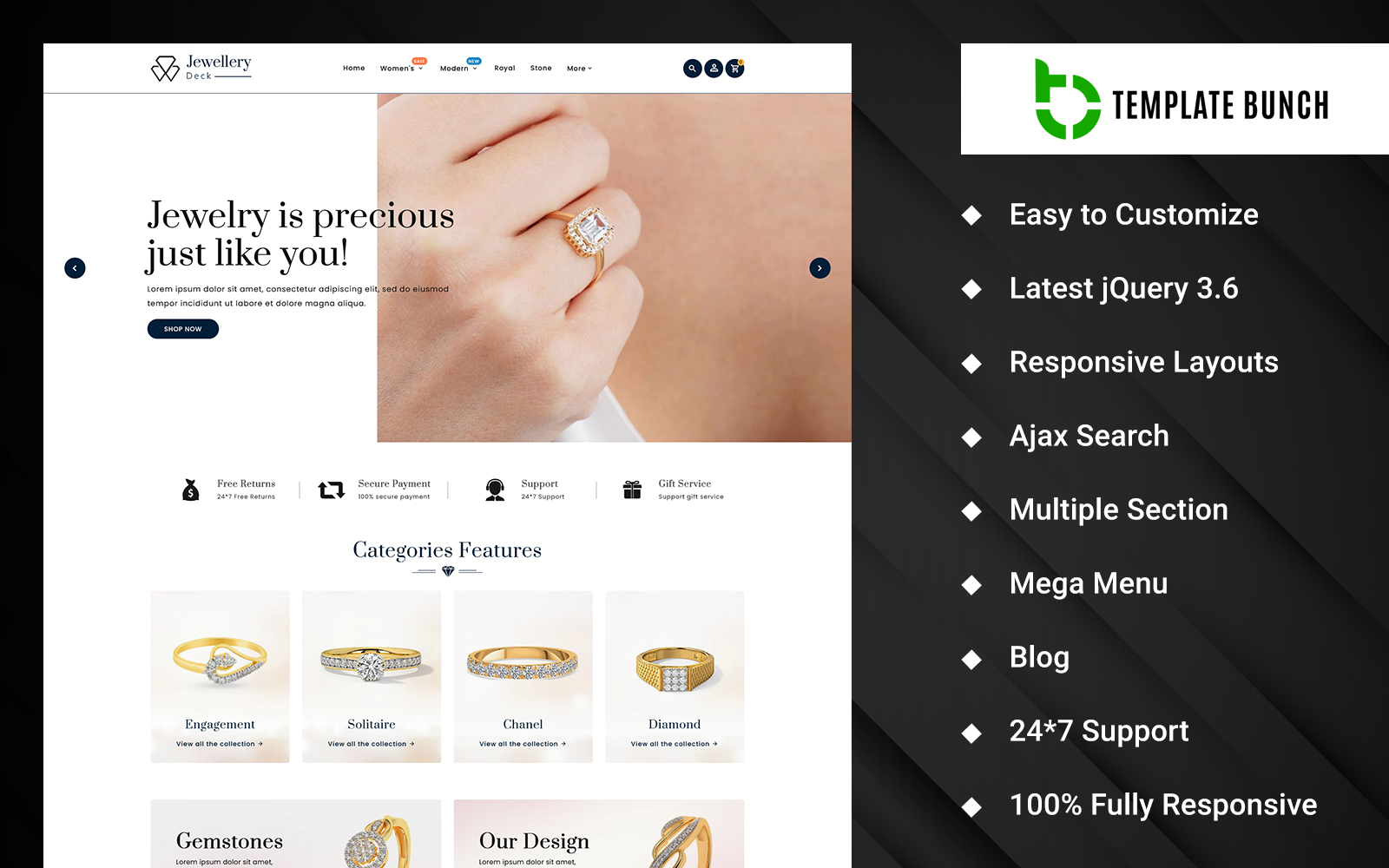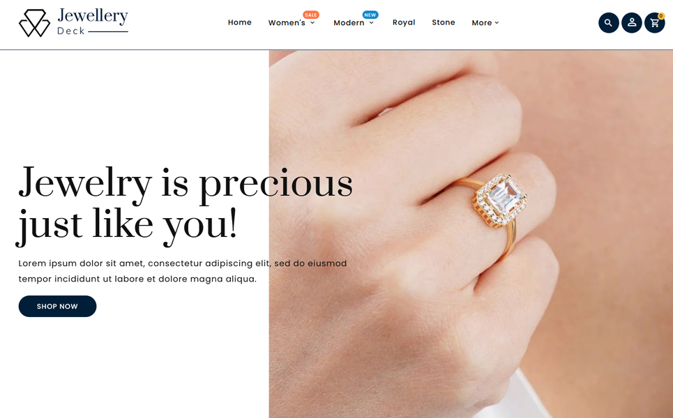 Jewellery Deck - Responsive Shopify Theme for eCommerce is a refined and elegant theme built specifically for jewelry, luxury accessories, and fashion-focused online stores. With its Live Customizer and powerful Redux framework integration, this theme gives you complete control and flexibility to design your store with just a few clicks using the One Click Import feature and unlimited customization options.