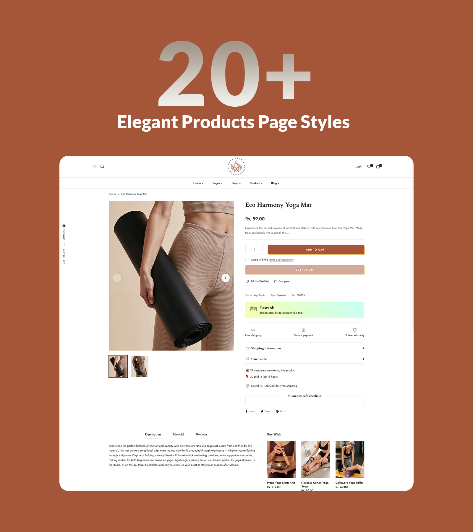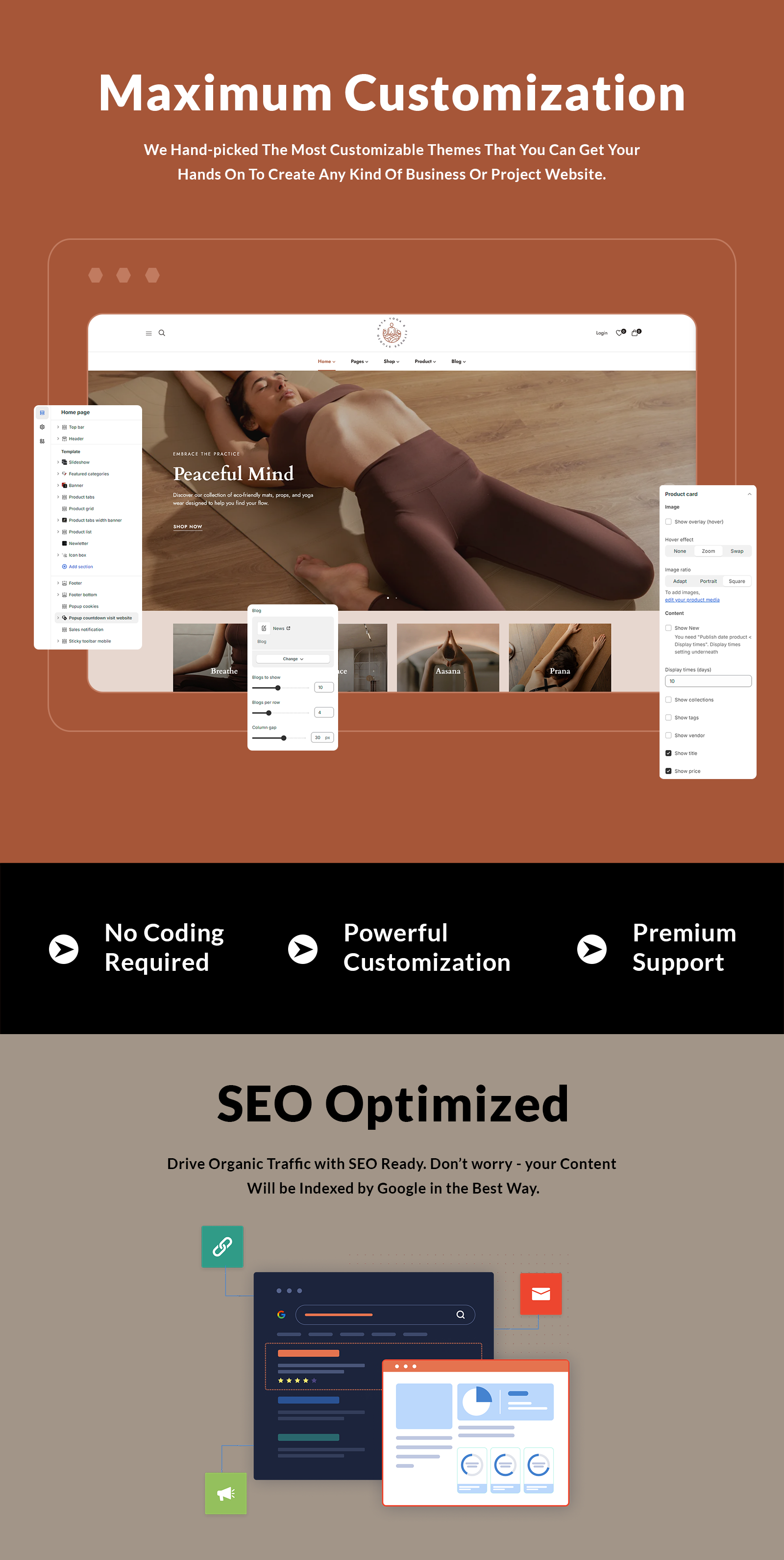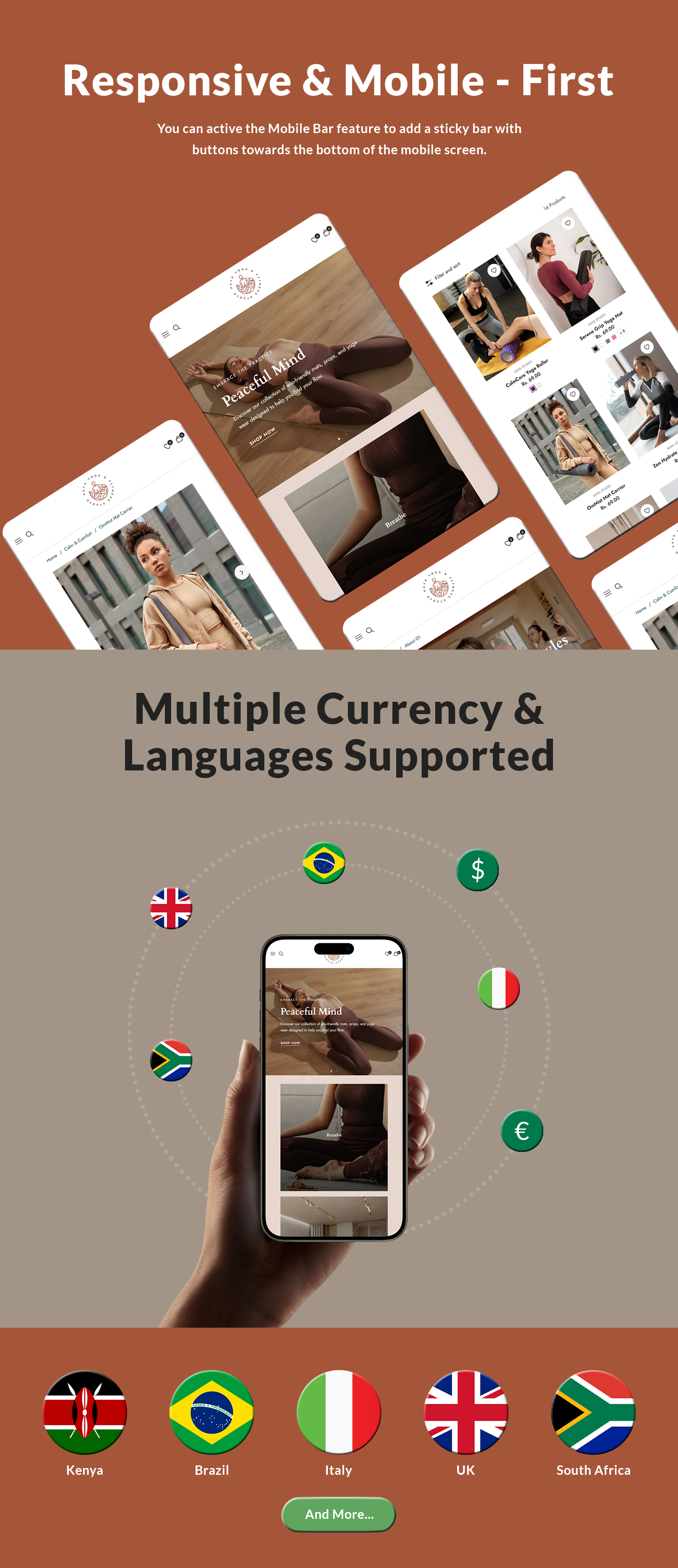 Perfect for Health, Meditation, Yoga, or any niche, it offers 1 homepage variations, 1 header styles, and unlimited megamenu layouts for maximum flexibility. More than just a storefront, Moksakaya is designed to beautifully showcase your products with a stunning image slider in the header area. Fully responsive, retina-ready, and optimized for mobile devices, it ensures your site looks flawless and performs seamlessly across all screens, providing an exceptional user experience. If you're looking to build a professional, one-of-a-kind eCommerce website effortlessly, Moksakaya is the ideal choice.