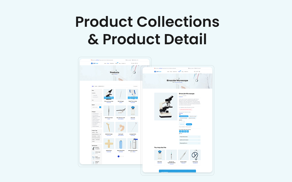 LifePulse, a cutting-edge, robust and visually stunning Shopify theme to empower your health-care and medical online-stores for selling medical supplies, surgical equipments and well-being products. This versatile and feature-rich template is meticulously crafted to cater to the unique needs of the healthcare industry, providing an all-in-one solution to establish a trustworthy and informative digital presence.
